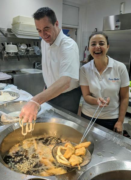 Emma with her very long term employee Mark cooking up a storm at Ocean Master