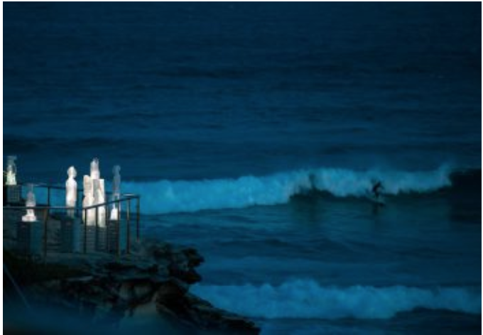 In 2018, our 3rd Sculpture by the sea collaboration with the Small Ocean collective was called Inundation (Image by Charlotte Curd). In this work we made the same figures as 2017, but 3d printed in translucent recycled PETG, hollow. We fitted solar power water pumps to each figure and filled and emptied each echoing the rise and fall of tides in their respective locations. We also illuminated the from inside. The first SXS work to be illuminated at night. It created hauntingly beautiful, ghostly figures of cultures that may soon disappear due to human induced climate change.