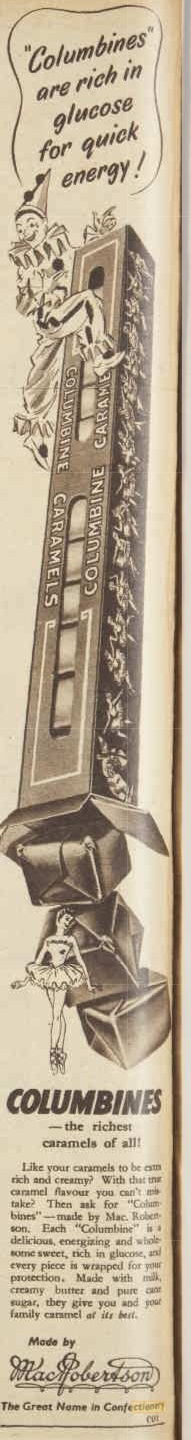 But there, were other issues to be fought, and how Macpherson Robertson met them is characteristic of the man. There was the difficulty of getting glucose, the principal constituent of sweets. MacRobertson got over it by establishing Maize Products Limited, a venture in which Hoadleys and Allens shared. It had a capital of half a million, and its main objective was the manufacture of glucose. Incidentally, It also makes a few sidelines, such as "Dandy" Starch.