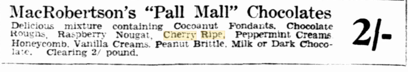 Old Australian Chocolates Back On The Market: The Cherry Ripe Song