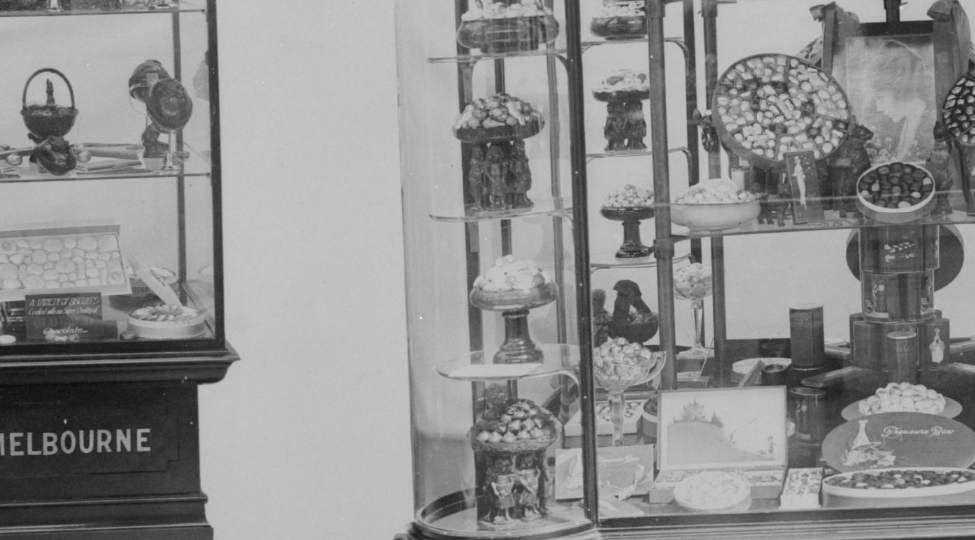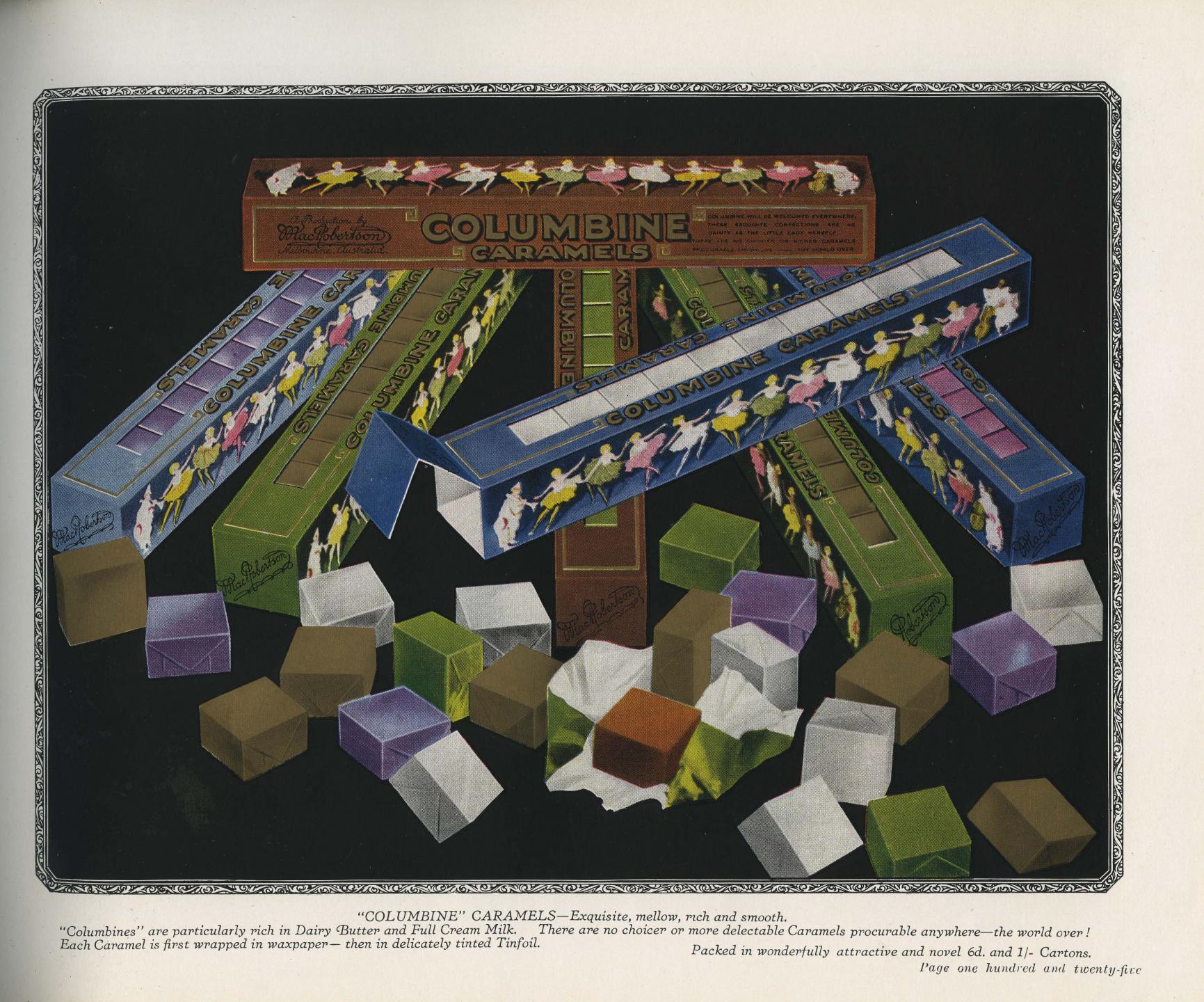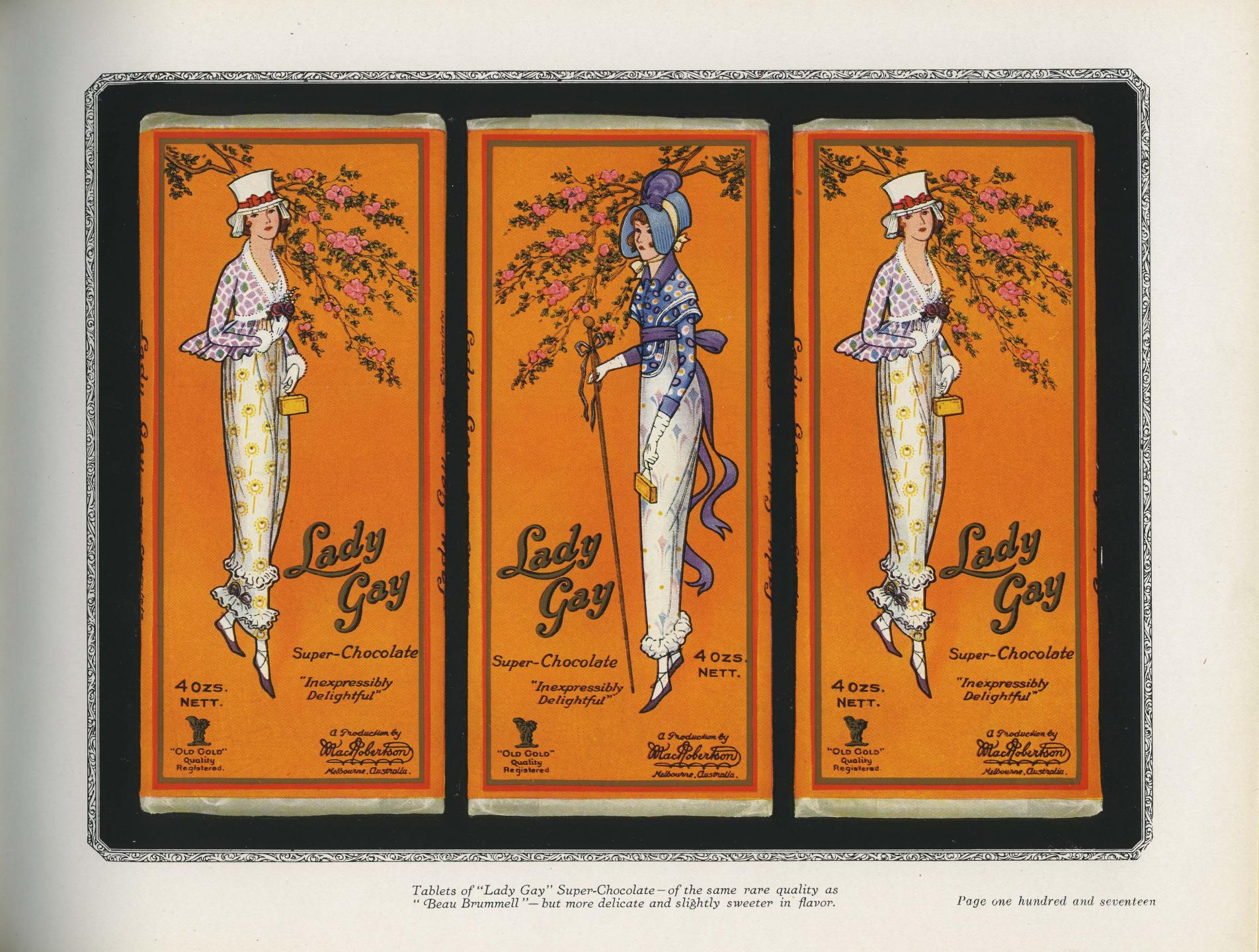 The development of the chocolate trade did not take place until recent date. To-day the chocolate trade forms the greater portion of MacRobertson's trade. The success in this style of chocolate has encouraged this manufacturer to produce the most elaborate and ornate boxes of chocolates, ribboned and decorated in an attractive way.