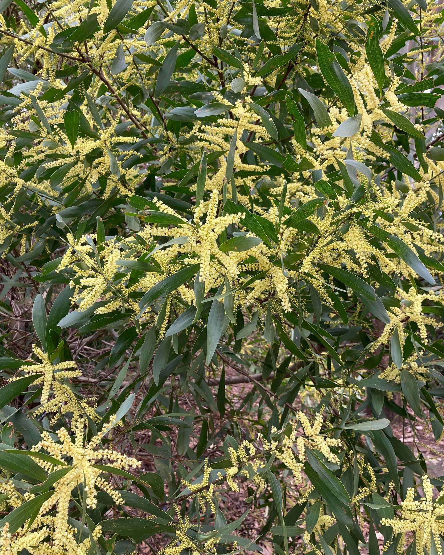 The lyrebirds' calls ring out through the bushland as he builds his dancing mounds to attract his potential mates. It is the time of the flowering of the Marrai'uo (Acacia floribunda; known as gossamer wattle, weeping acacia and white sallow wattle) which is a sign that the fish are running in the rivers.