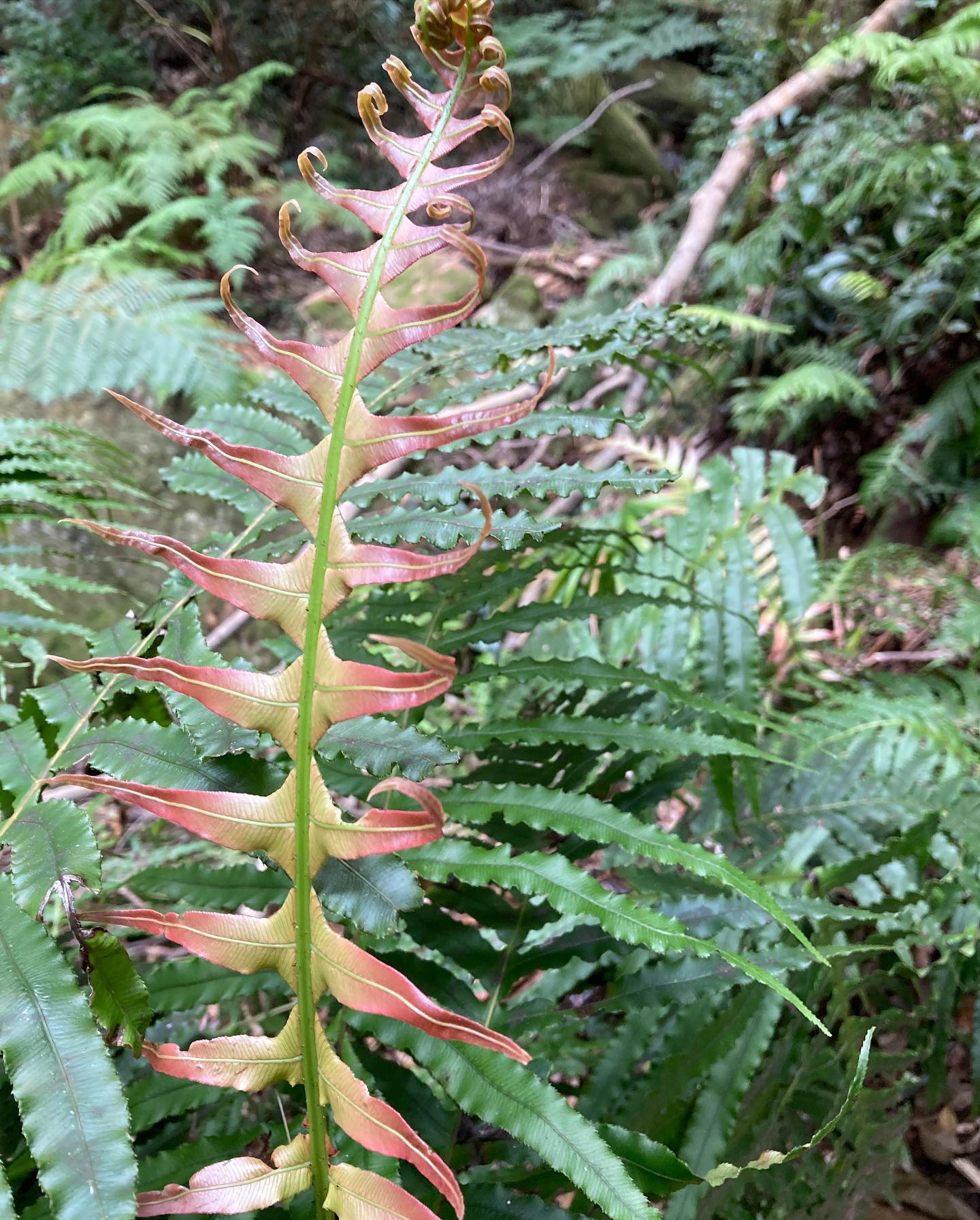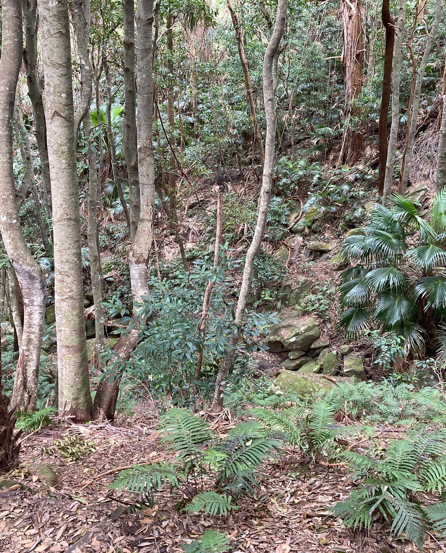 Crown of Newport Reserve is a hidden treasure of Pittwater’s natural Heritage. On our Crown to the Sea trek July 31 there were Coachwoods, huge turpentines, many ferns. The Crown to the Sea walk takes you through different types of bush. There is the sandstone headland vegetation in Attunga Reserve then littoral rainforest in Crown of Newport reserve. Steep, muddy and marvellous.