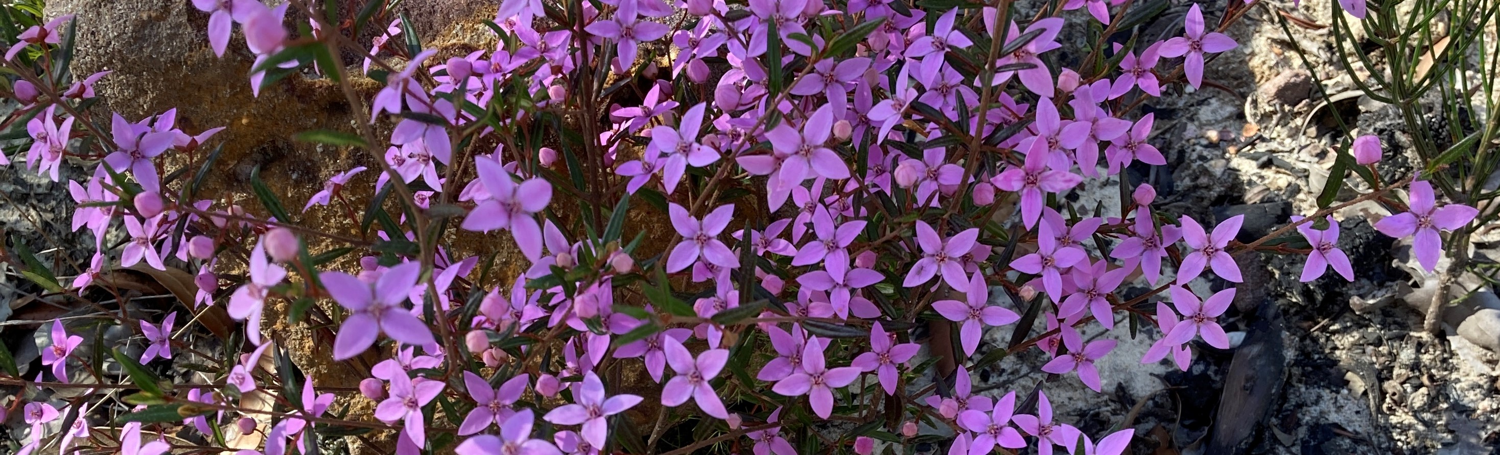 Ledum Boronia aka Boronia ledifolia. Spring is bursting out all over now around Ingleside and in the national parks. The underside of the petals when seen in bud are red. The strong scent of the foliage comes from oil glands.