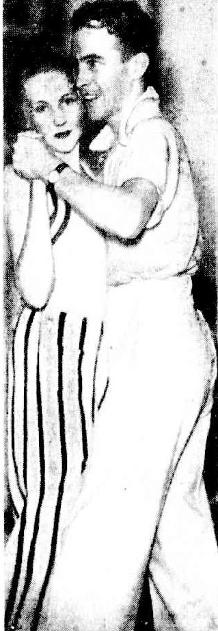Joy White, from Muswellbrook, chose chocolate flannel slacks, and tied a gaily patterned silk handkerchief round the top. Mrs. Alrenn Samuels, In black satin trousers, also favored the handkerchief top, and was so busy with her official duties she scarcely found tlmo to danoe. Others In the huge crowd which romped and -formed crocodiles round the room at the stroke of 'midnight were Mr. and Mrs. John Gunning, Mr. and Mrs. Hunter McPherson, Mr. and Mrs. Tom Vincent. Mr. and Mrs. Ted Keep, Mr. and Mrs. Philip Lloyd-Jones, Mrs. Walter Keith-Elliott, Mr. and Mrs. Graham Pratten, Mr. and Mrs. Jack Prat-ten, Mr. and Mrs. Doug. Doyle, Mr. and Mrs. George Mervale, Mr. and Mrs. Paul Cohen. Mr. and Mrs. Vernon Dlbbs. Also In the throng were Mrs. Fat Levy, Mrs. R. A. Eakln. Mrs. J. W. Plckburn, Mrs. Dorothy Shepherd, Mr. and Mrs. John Wardlaw. Barbara and Sheila Smart, Pamela Osborne. Pamela McPhlllamy, Babe Pain, Noel Boyd, Mary Adams, Cherry Davles. Mary Wells. Joan Ord, Pauline McDonald. Janle Kelth-EUlott, Muriel Cob-croft, Margaret Hagon, Dletje Andrlesse. Nancy McNaught, Audrey Favlell, Jean Ruthven. AUne Edwards, and Nuttle Mackellar (fresh from the Strathaird cruise), Betty Stuart Murray, Peggy Street, Elsie McWillam, Mollie Wolfcarius, Peggy Royle, the George Chapmans, Pat McDonald, Audrey Peters, Madeline Mackay-Sim, Mrs. Dick Kirby, Peter Stewart, Owen Rees, Lieutenant and Mrs. Max Clark.