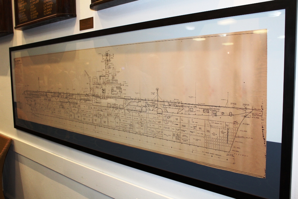 The second location is under the club’s Honour Board and is the Naval Working Drawing of the Naval Destroyer HMAS Melbourne showing the 1968 refit. This was presented to the Sub-Branch by Commodore Graham Sloper AM RAN, who sadly passed away late last year.