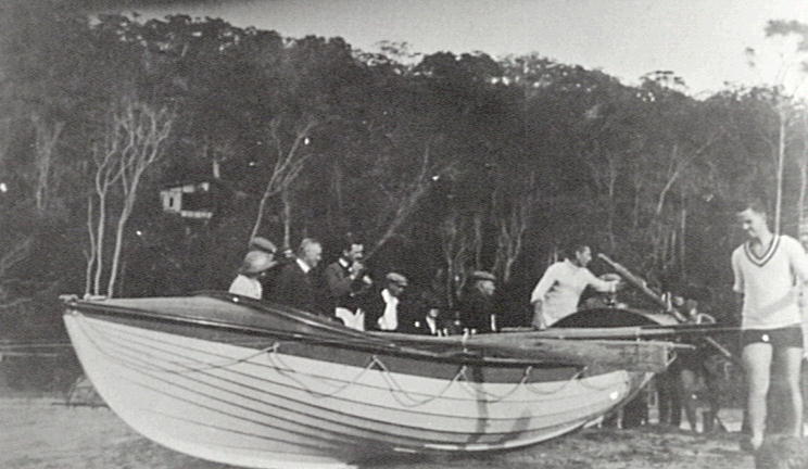 PALM BEACH SURF BOATWhat is claimed to be the most up-to-date surf-boat built in Sydney was launched at Palm Bench on Sunday. Built by W. Holmes, of Lavender Bay, at a cost of £93, it is 21ft overall, with a 5ft beam. It Is the only surf-boat in New South Wales with masts and sails.The launching ceremony was performed by Mrs. H. W. Meggitt. Mr. J. Craig referred to the liberality of the residents of Palmi Beach, and to their keen Interest in the Club. The spectators were treated to a first-class exhibition In the heavy southerly swell that was running, and the boat behaved splendidly. Mr. Fred Notting, ex-captain of the Manly Surf Club, took the steering oar.Although the Palm Beach Surf Life saving Club was started only in November 1921, it has now 35 active members, nearly all of whom are qualified life-savers. PALM BEACH SURF BOAT (1922, May 17). The Sun (Sydney, NSW : 1910 - 1954), p. 8 (FINAL RACING). Retrieved from http://nla.gov.au/nla.news-article223949070PBSLSC -The First Shed and First Surf Boat: Left; Merle Loxton, Laurie Gallagher, Tim Gonsalves and Sydney Gonsalves. H.R. Ayres and Harold 'Midge' Gonsalves. Right; Adrian Curlewis, Len Palmer, M Ormsby...... Picture Courtesy Philippa Poole - daughter of Adrian Curlewis.