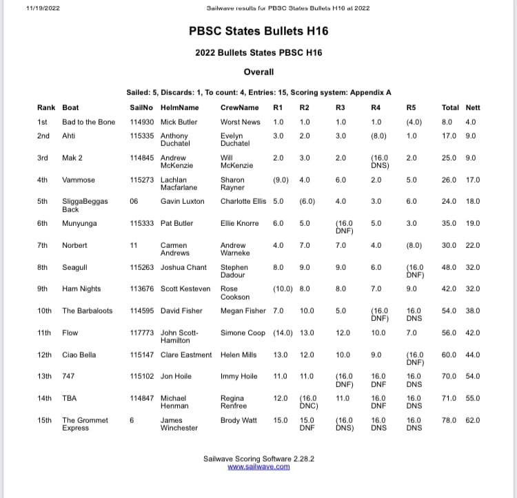 Ultimately, the finals were as they stood after the five heats held during Saturday’s sea-breeze. All of which can be found via the link below: