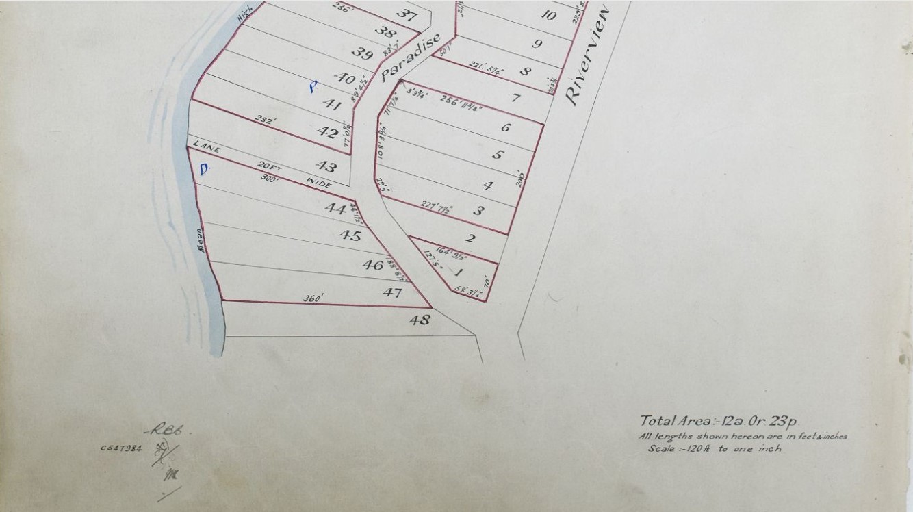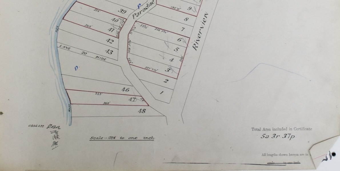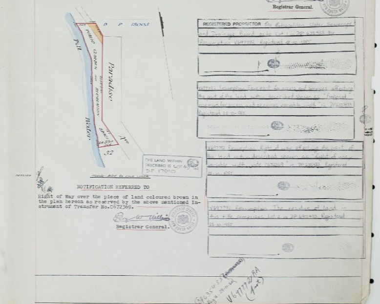 Mr. Powell sells those lots from 1936 on and then the residue of 12 acres and 23 perches goes into Vol-Fol: 4866-246 with sales continuing from later 1937 onwards and including ‘right-of-way’ paths between the Lots and ‘Paradise Avenue’ dating from then too on the Certificate of Title and map for these Lots of land.