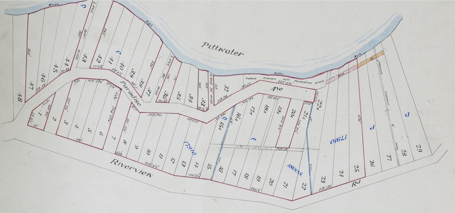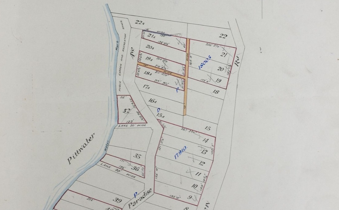 Pre- 1905 Land Titles Map - Showing Paradise Beach lots'. Courtesy Land Titles Office Historic Records of NSW.