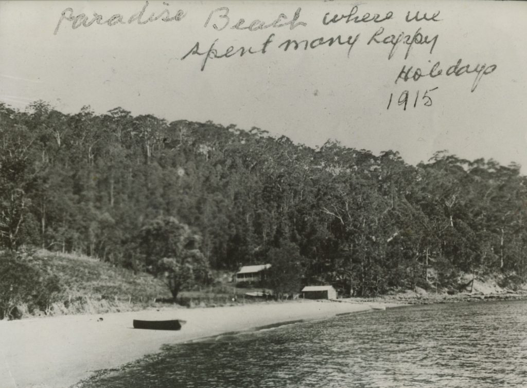 ''The hand-written caption by Nan Henry says it all – ‘Paradise Beach where we spent many happy holidays, 1915’. Difficult to recognise if it weren’t for the caption, the site has changed dramatically since these days. The ‘guest house’ was a popular holiday home for employees of Fostars Shoes in the 1920s and 1930s.'' - Geoff Searl OAM, President Avalon Beach Historical Society