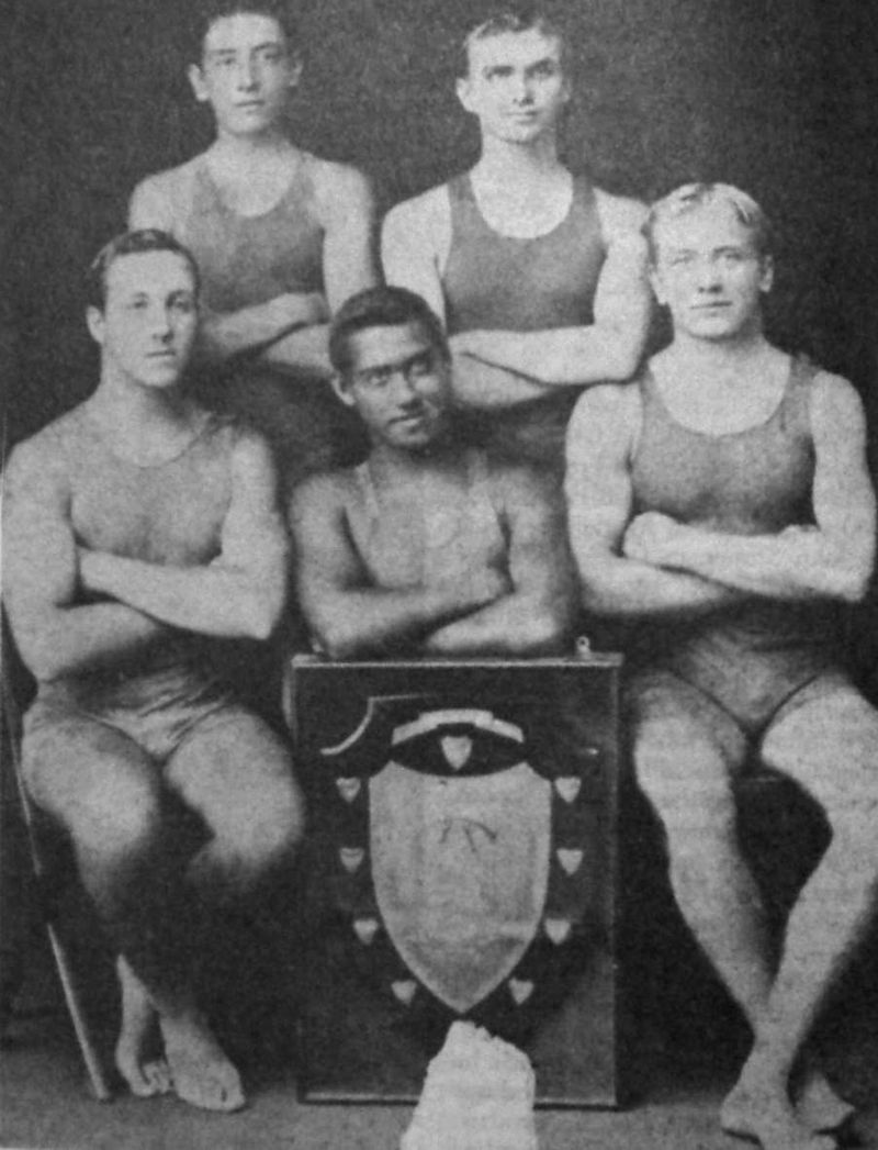 Picture: Cecil Healy, seated at left, with East Sydney teammates; Freddie is at right back - Manly swimming club pic circa 1905