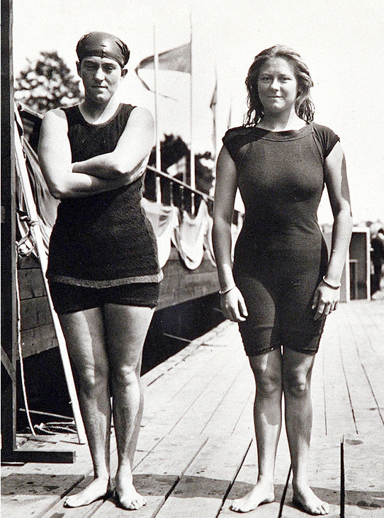 Fanny Durack (left) and Mina Wylie at the 1912 Olympics