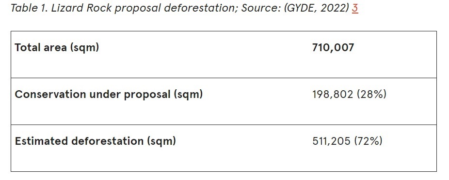 Table 1. Lizard Rock proposal deforestation; Source: (GYDE, 2022) 3