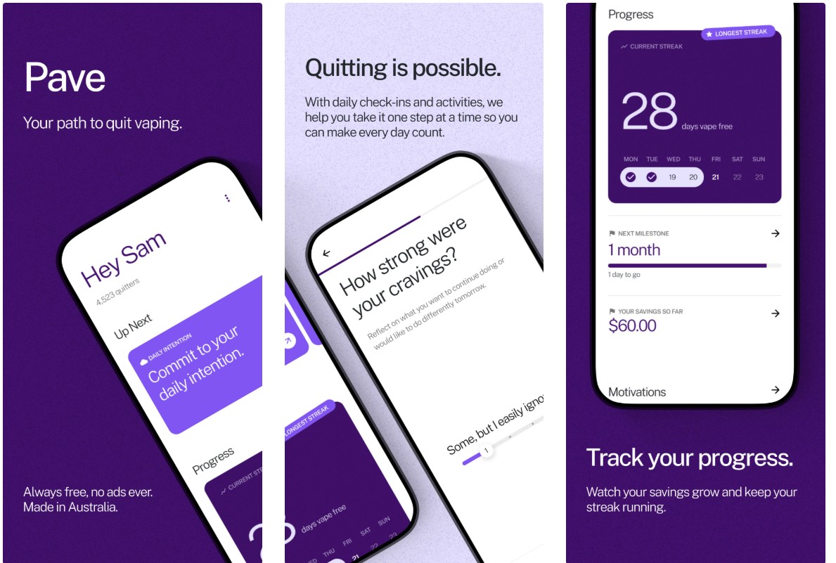 But vaping remains a significant public health issue and the new Pave app is another option we can provide to encourage young people to seek help and stay on track on their quit journey.