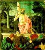 This is because the habit of chasing inter-connected ideas has stayed with me. So when you read what I have to say about goitre, for example, you will also be able to see the painting which appears as a thumbnail on the left, Resurrection, by Piero della Francesca, in which Piero is one of the sleeping guards (you can see him here on the right), something we know because the guard, like Piero, had a goitre (that's the lump beneath his chin).