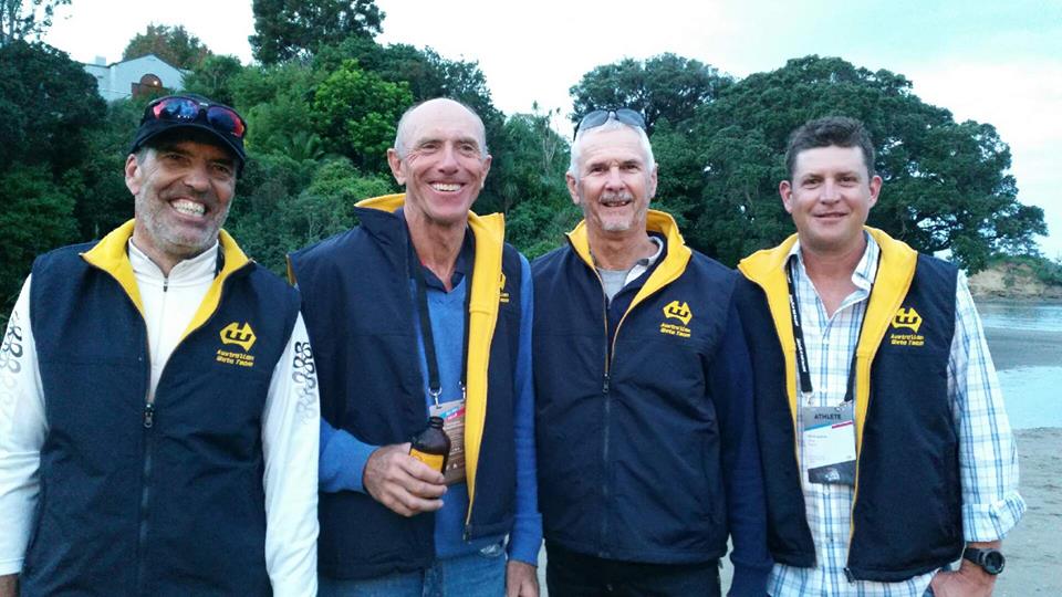 Martin Cross, Rod Waterhouse, John McCormick and Peter Martin at Waiake Beach.
