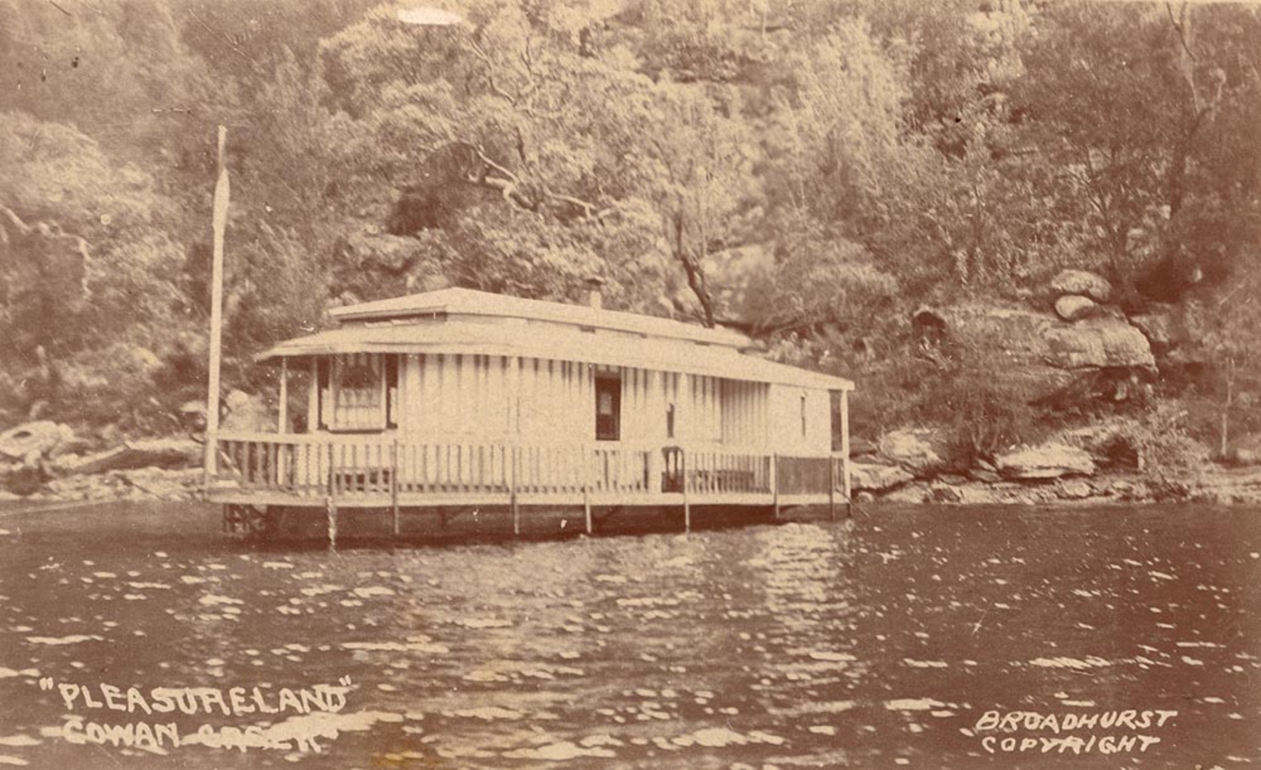 'Kuring Gai ' House boat, Cowan Creek, Kuring Gai Chase [including steam launch "Kuring Gai"]. Item: a116504h, courtesy the State Library of New South Wales.
