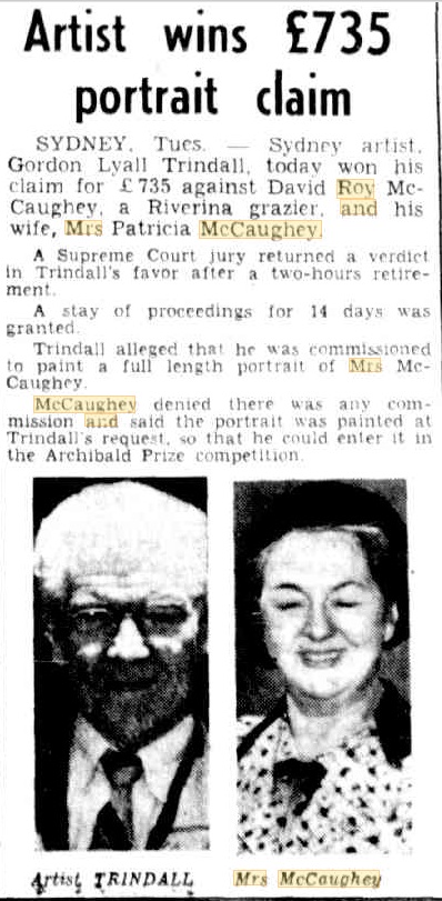 Change of plans for Mr. and Mrs. Roy McCaughey, who were to have gone abroad shortly on a rush trip to attend the cattle sales in Scotland in February. Roy has arranged for a "stand in" to cover the sales for him, as he and Mrs. McCaughey want to be here for the opening of the Royal Agricultural Show. Women's News Fashions and Gossip (1954, December 30). The Sun (Sydney, NSW : 1910 - 1954), p. 17 (LAST FINAL EXTRA). Retrieved from http://nla.gov.au/nla.news-article232002535