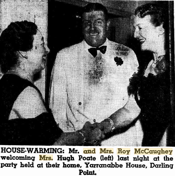 GREAT planning for the Roy McCaugheys, who have bought an old home with a magnificent outlook at Bayview. . . . They intend to tear down the front part of the house and convert the back section into staff quarters. Then they will build a two-storied home facing the water and separated from the staff quarters by an Italian courtyard. A magnificent swimming pool in front of the house will complete their project. They will make the new home their "slightly out of town", residence and keep their flat at the Astor as the "in town" one. Personality Parade (1954, June 23). The Sun (Sydney, NSW : 1910 - 1954), p. 39 (LATE FINAL EXTRA). Retrieved from http://nla.gov.au/nla.news-article229714866