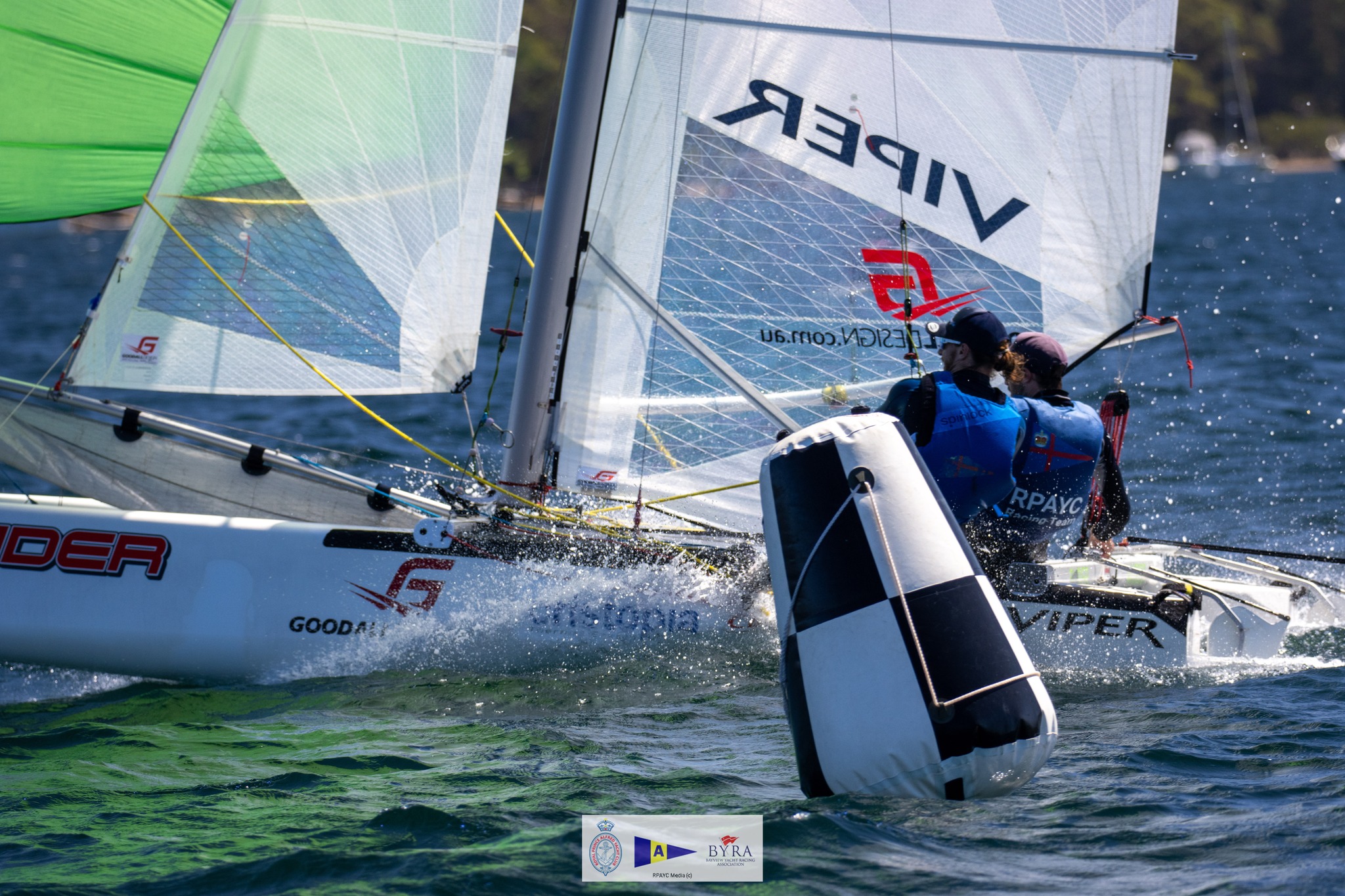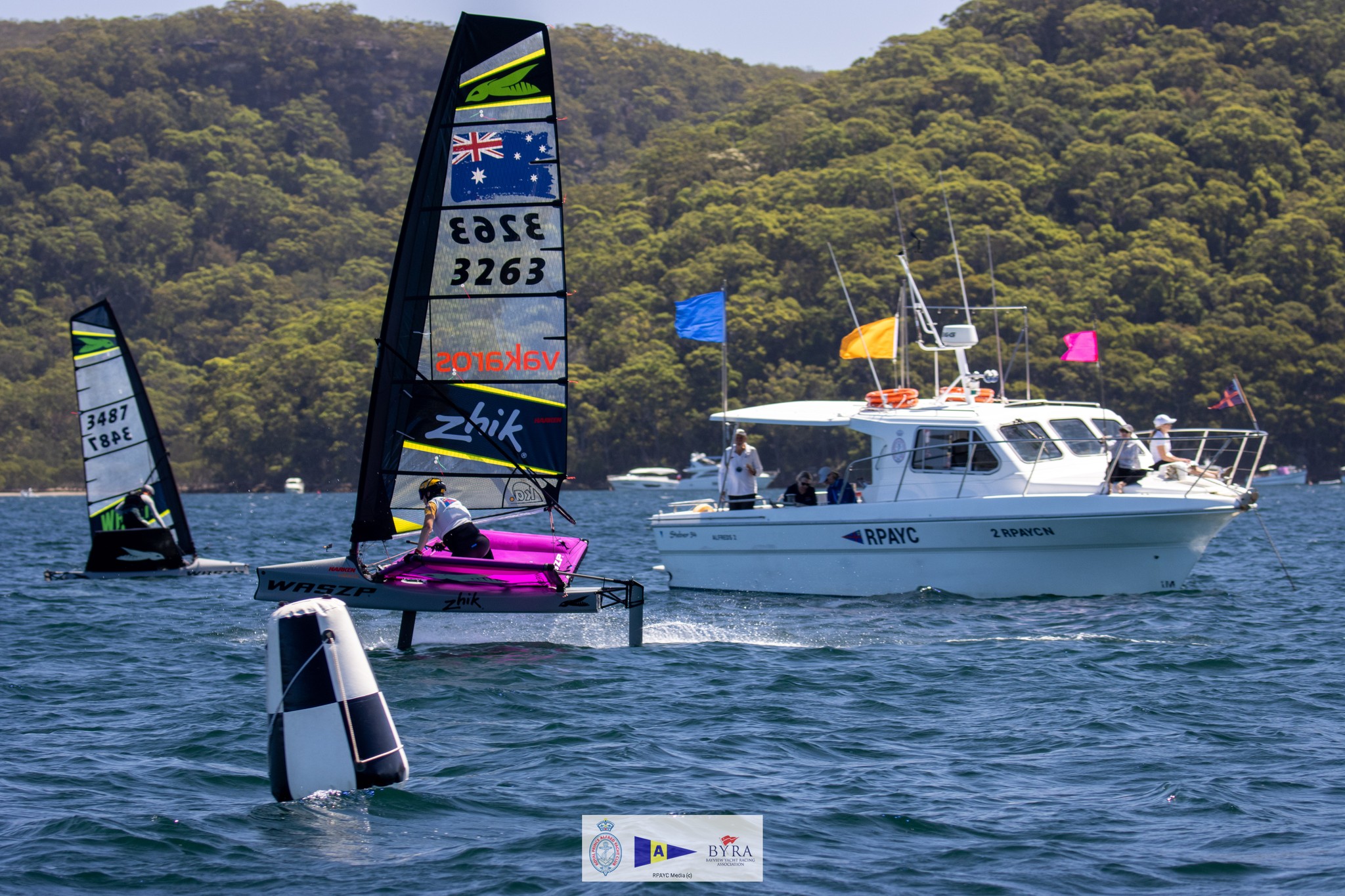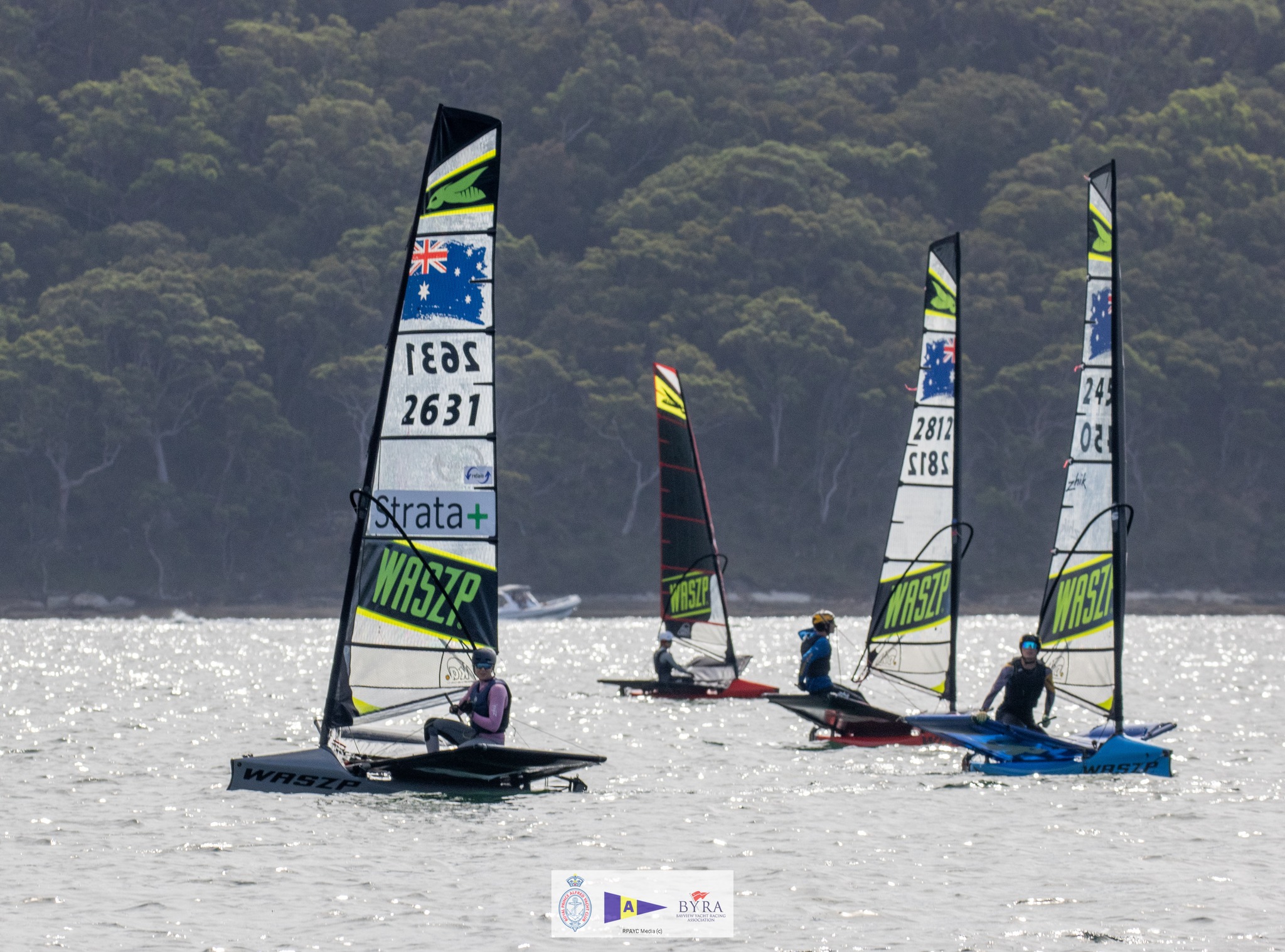 On the Waszp NSW Championship course, located north of Longnose Point, conditions proved more challenging. Racing for the WASZPs, 29ers, 420s and Multihulls struggled in the patchy breeze, with only one race completed for the WASZPs and two races for the remaining classes.