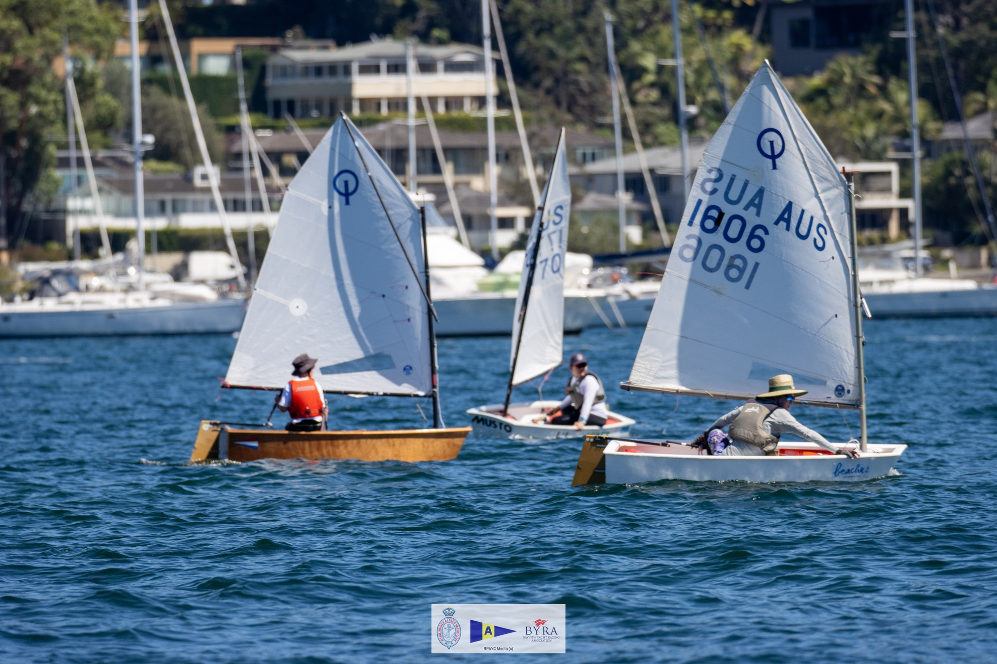 With temperatures in the mid-20°C range and mostly cloudy skies across the estuary, the day provided comfortable conditions on shore but little pressure across the water. The light to zero breeze across Pittwater made it impossible to set a fair course for the fleet during the morning session.
