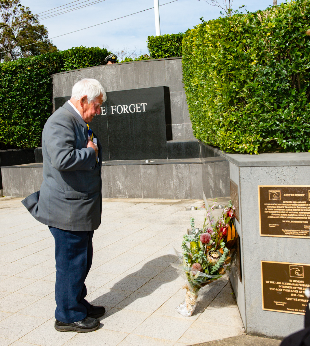 The people who attended this moving service were our five WWII Veterans Donald Newport MZ 2/12th Commando Squadron of the 2nd Ninth Regiment, Bert Brownliee RAAF, Brian Sargeson Royal Navy, Tommy Knox RAF Bomber Command, Brian Heal Royal Navy and their carers, officials of Pittwater RSL Sub-Branch and Pittwater RSL Club Ltd, our guest speakers Honorable Bronwyn Bishop OA and Joe Crumlin OAM, Afghanistan Veteran Sub Lieutenant Zamri Burns was flag bearer, Bugler Harriett Channon. Finally Beryl Clarke (nee Byron) who was an 11 year old girl when her three brothers and sister went off to the War, recounted the joy she experienced when her brothers and sister names appeared in the Sydney Morning Herald to say they were safely coming home from the War.