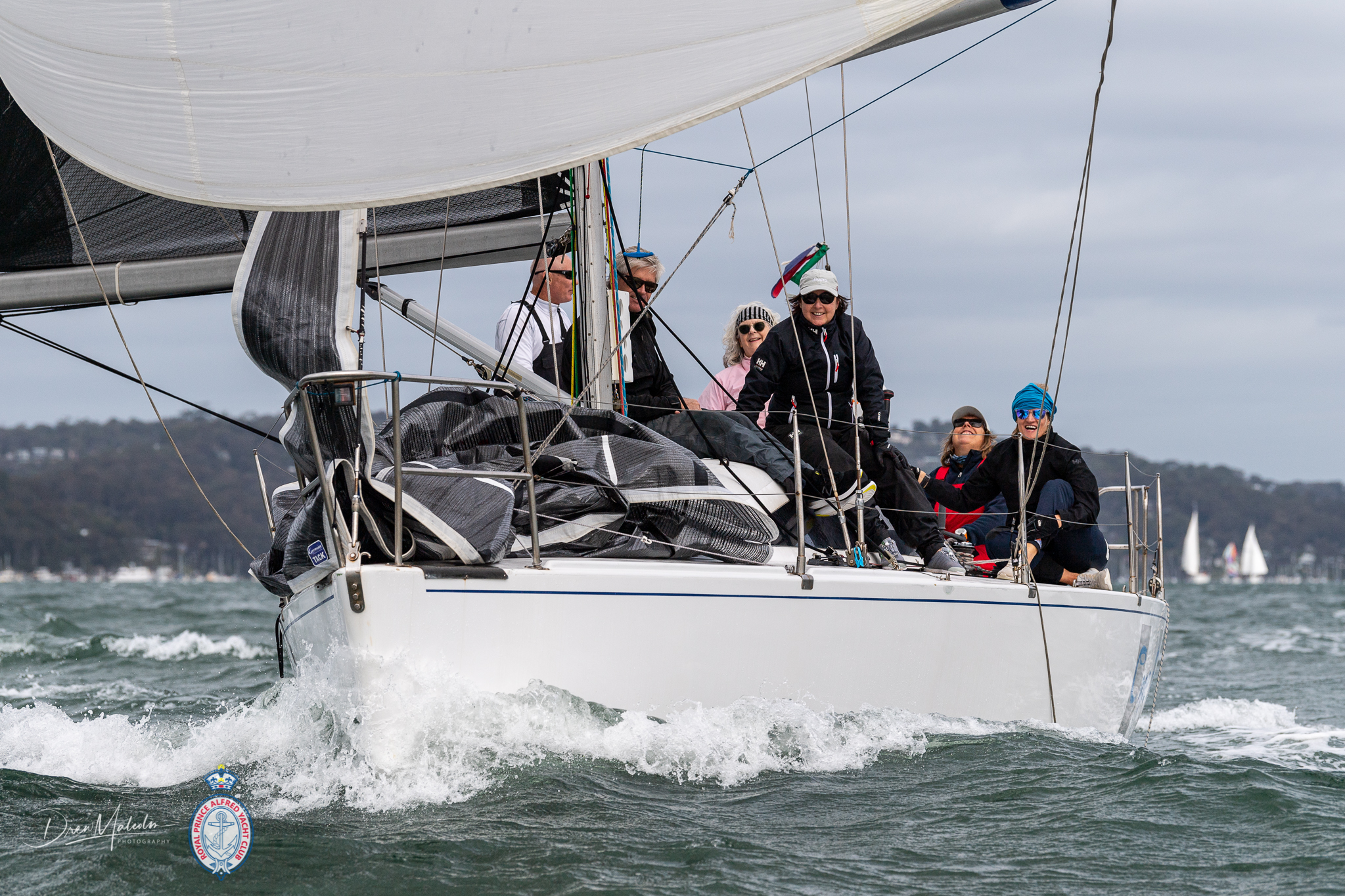 Liz Charles, for the first time sailing with an all-female crew on Calibre (chartered by the Sydney 38 Association for the ladies), had an excellent day, finishing sixth in Race 1 and fourth in Race 2, to be fourth overall.