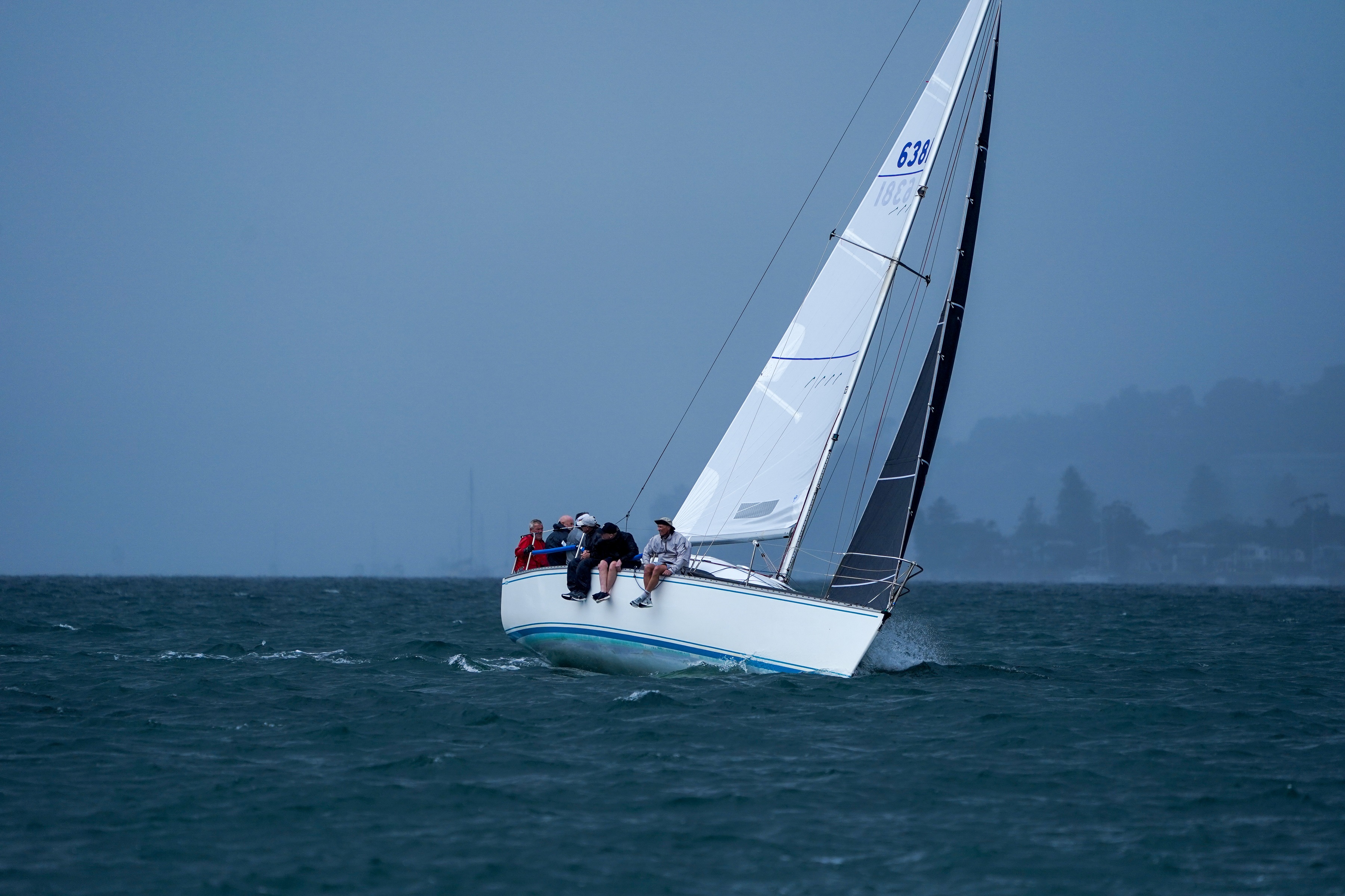 Shane Kearns kept the pressure on with Azzurro-White Bay 6, to place second overall, which he carried over from yesterday. Windward/leewards are not usually the S&S 34s forte, particularly in the light breeze and sloppy seas that were offered up today. It was therefore a surprise to see him score 4-2-3 results to finish five points behind Young at Heart.