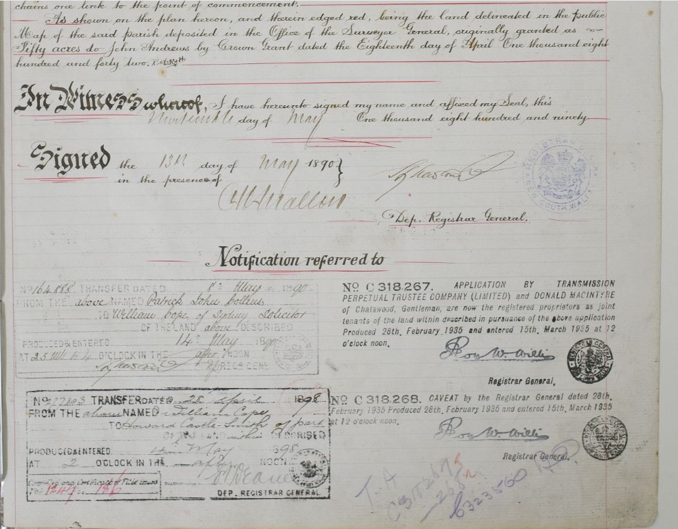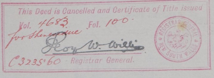 In 1910 Mr. F J Jackson brought his land under Torrens Title: