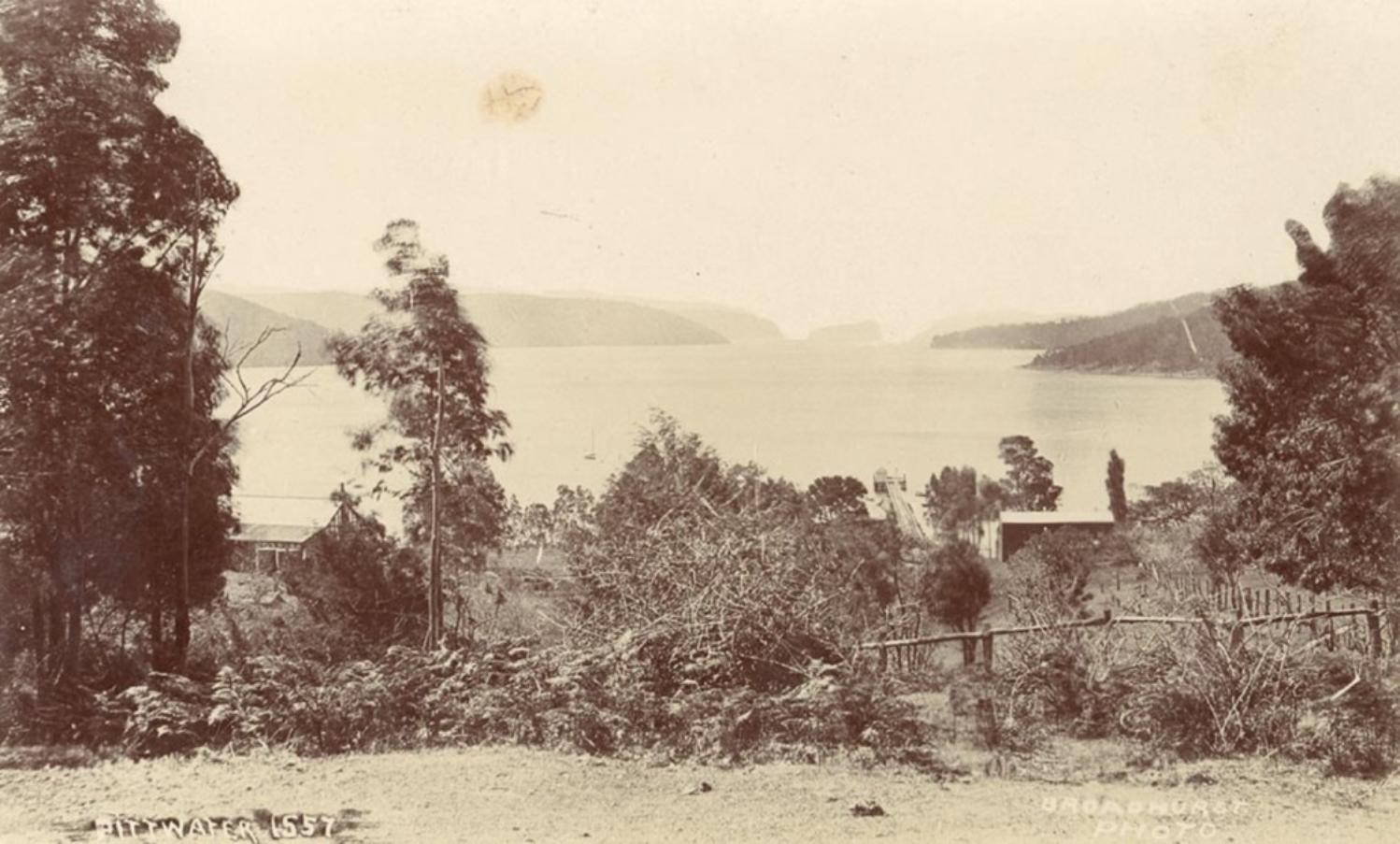 Bayview has always been famous for its Spotted Gums growing on the roadside. The grown trees are thirty and forty feet in the barrels, with bark of yellow-green shade. The foreshores in the early days were sold to settlers for £1 per acre—five shillings deposit, and the balance by yearly instalments. Swamp-oaks grew thickly round the shore, and the land was principally taken up by owners of small sailing vessels on account of the oak firewood, which was conveyed by sea and sold in Sydney. When the oak was depleted, owners sold their holdings for whatever they would fetch and bought another portion. As far back as 1829 heaps of shells were to be found in the creeks, and large vessels were engaged in shell-digging, the shells being taken to Sydney to be burnt for lime.