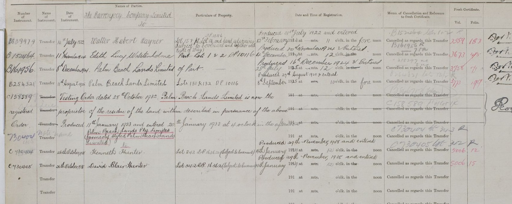 In June 1911, just after the tramline to Brookvale opened, a group of businessmen registered the 'Barranjoey Company', and led by John Ralston, succeeded in purchasing the Bassett-Darley Barrenjoey acreage. Some sources state they paid a whopping £500 - the proprietors apparently wanted at least £1900.00 but settled for what they could get.: