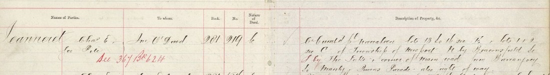 (49) Land Titles Office, Old System Deeds Book 201, No. 916; Book 224, No. 576.
