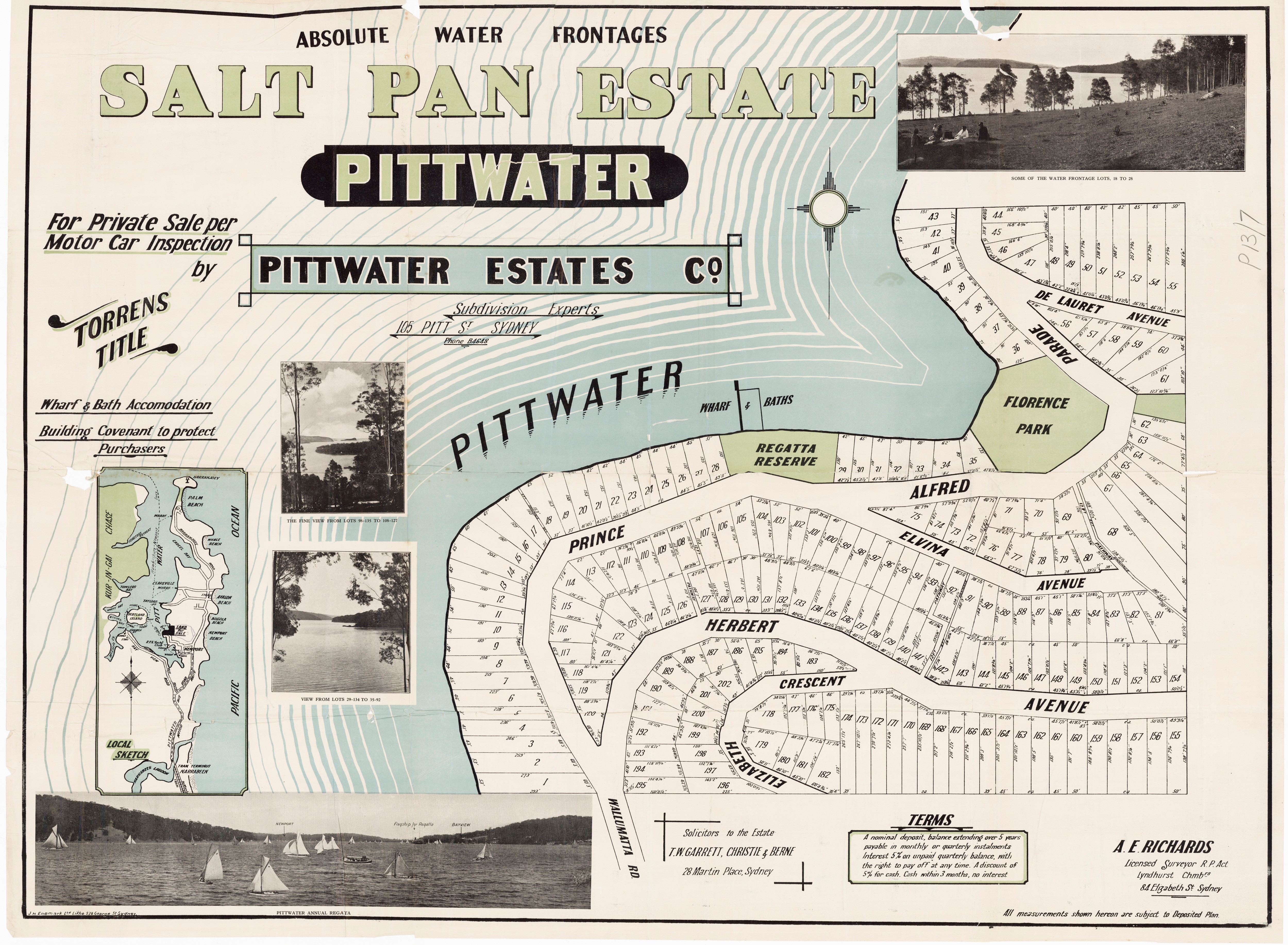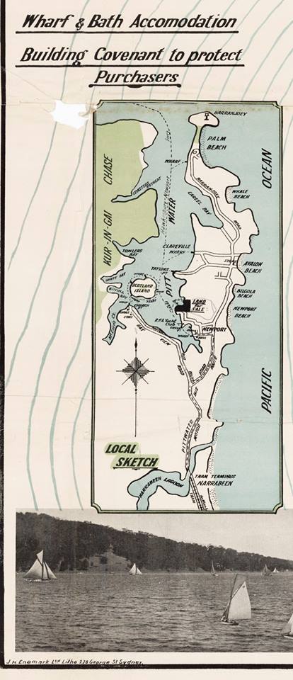 January 1880: TO CONTRACTORS – TENDERS are wanted for clearing roads and about forty acres of land at the new Pittwater Marine Township. Apply Mills and Pile, 112, Pitt Street. Advertising. (1880, January 19). The Sydney Morning Herald(NSW : 1842 - 1954), p. 2. Retrieved from http://nla.gov.au/nla.news-article13450418