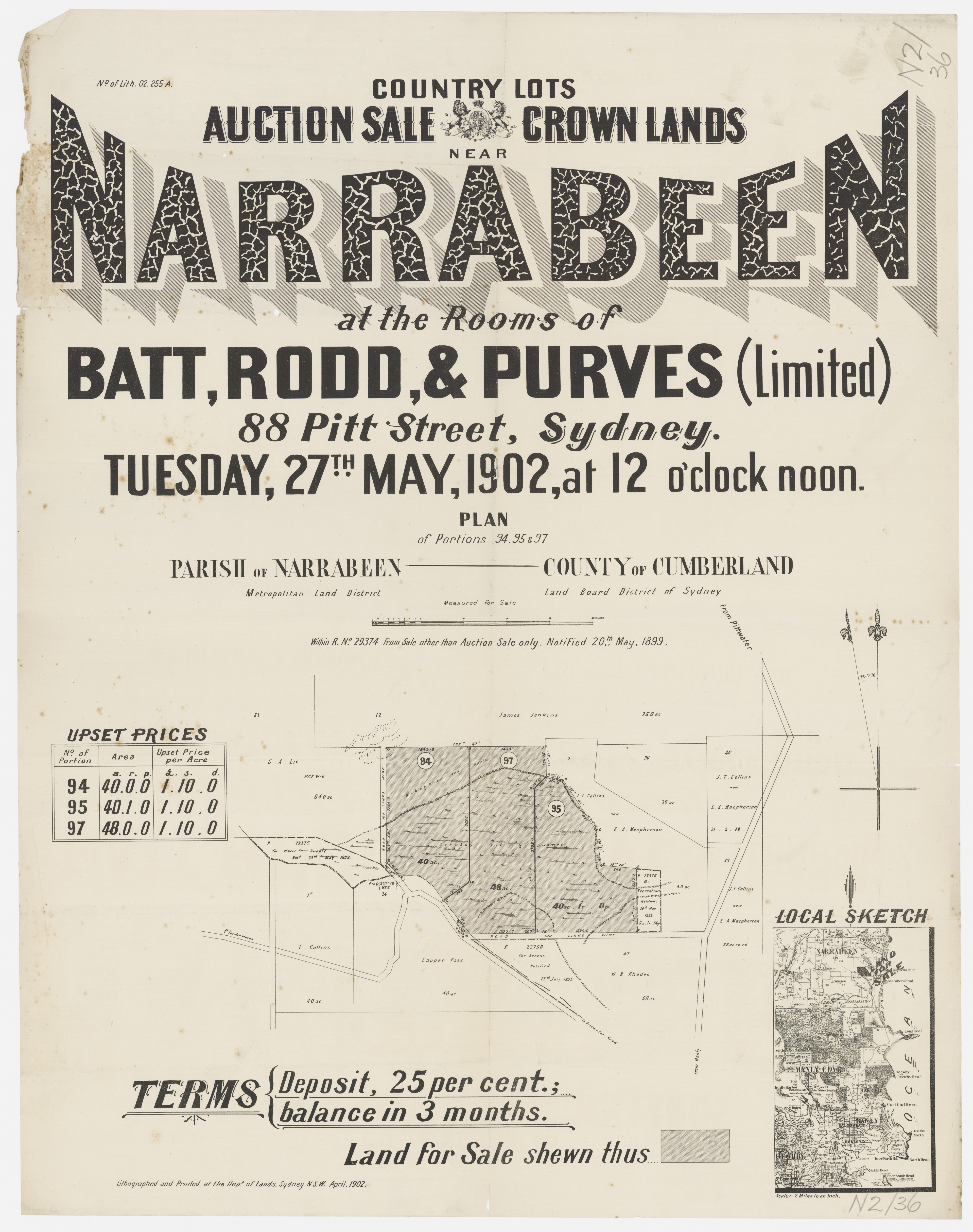 New South Wales. Department of Lands. (1886). Parish of Narrabeen, County of Cumberland Metropolitan Land District, Eastern Division N.S.W Retrieved from http://nla.gov.au/nla.obj-233833505