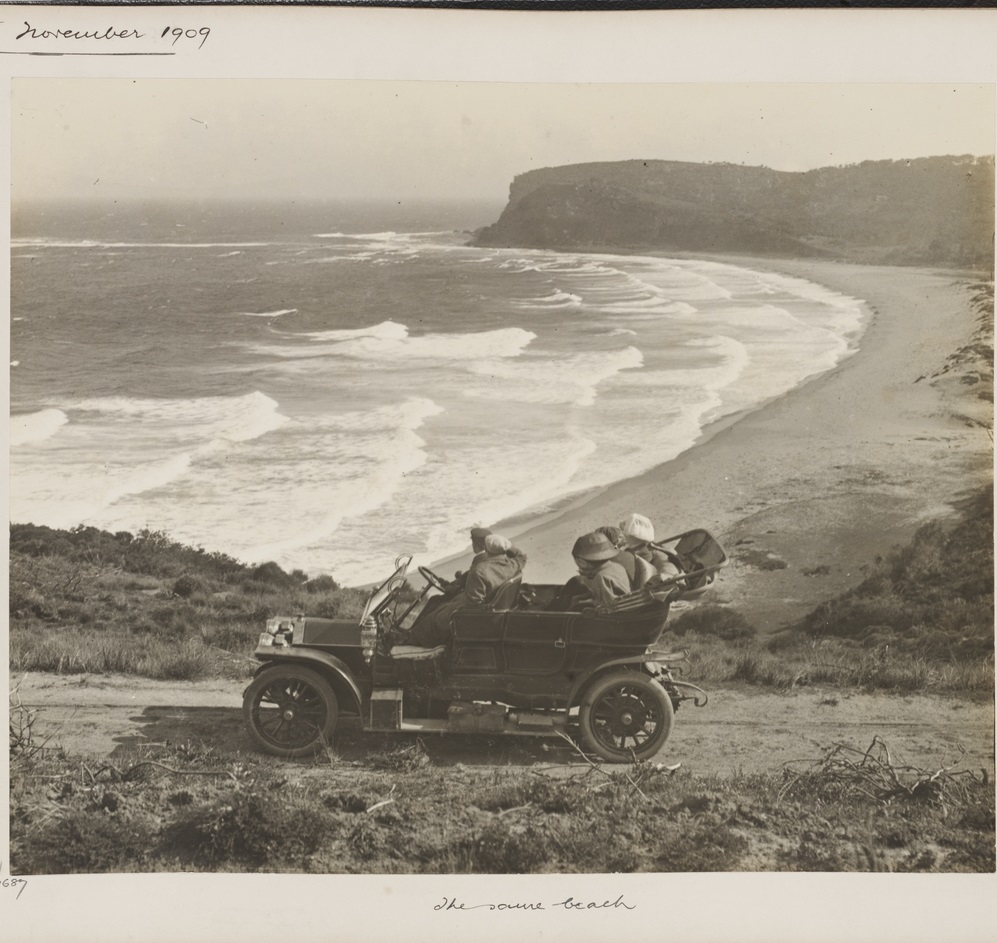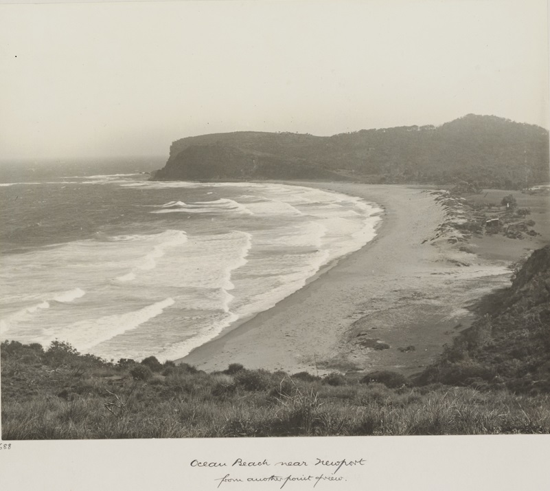 Sunday, 21st of November, 1909 'Beach near Newport' (is actually Newport Beach, called then 'Farrell's Beach', later 'Calvert's Beach') from Album 52: Photographs of the Allen family, November - December, 1909. Images No.: a1373014h,a1373015h and a1373016h courtesy State Library of NSW
