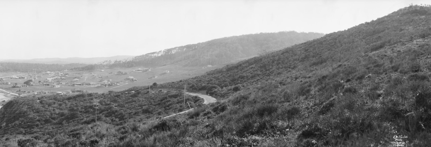 EB Studios (Sydney, N.S.W.). (1917). Panorama of houses on top of Bungan headland, looking north towards Newport Beach, New South Wales ca. 1920s (and enlarged sections from) Retrieved from http://nla.gov.au/nla.obj-162419012