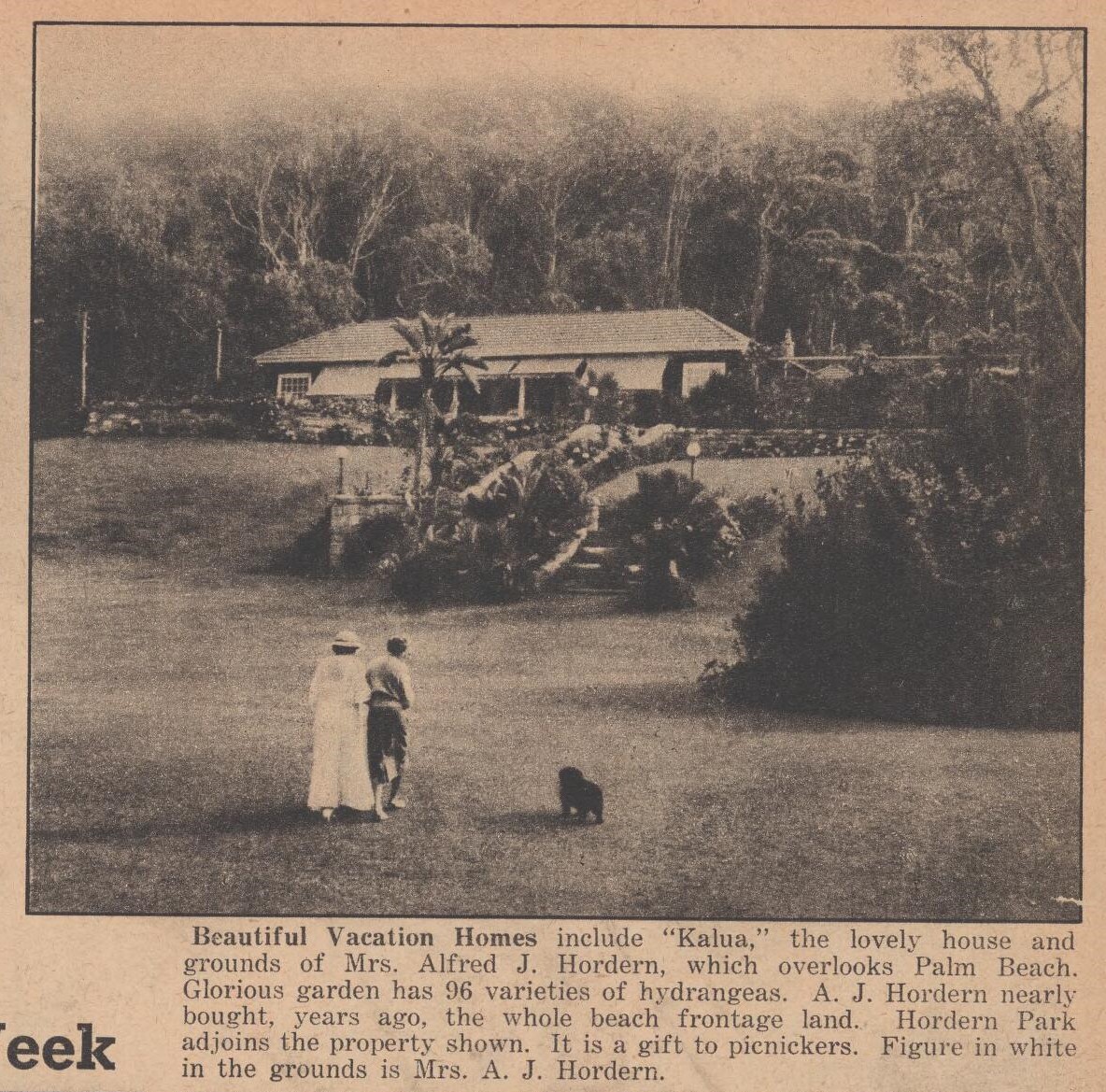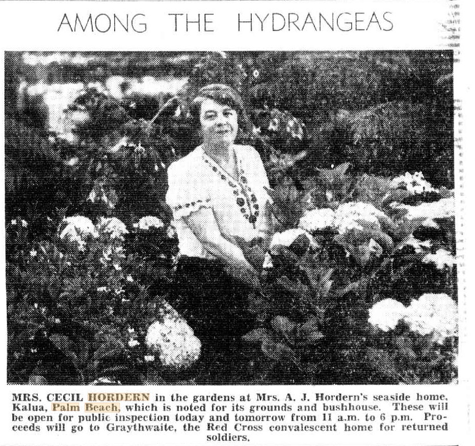However, both Alfred and Caroline Hordern became renowned for their gardens – both at ‘The High Lands’ the main family home at Waitara (now listed as 9 Highlands Avenue, Wahroonga) and at Palm Beach for Kalua, although many imported tropical plants and non-natives were used. In fact, one article credits 30 gardeners being employed at one stage, and 10 full-time.