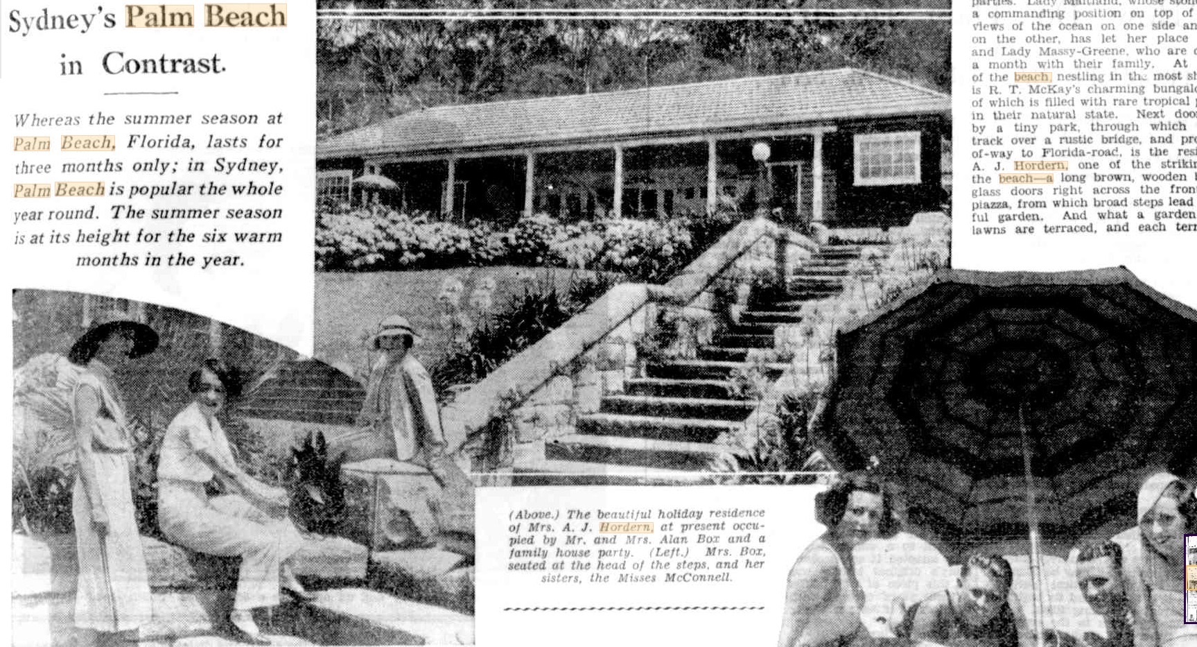 The Palm Beach myth, by David McNicoll. The Home : an Australian quarterly. Vol. 20 No. 2 (1 February 1939) Retrieved from http://nla.gov.au/nla.obj-389607884