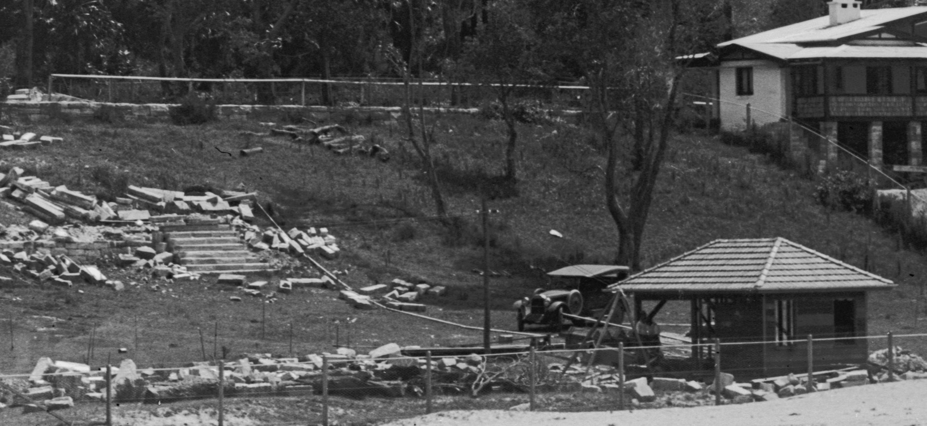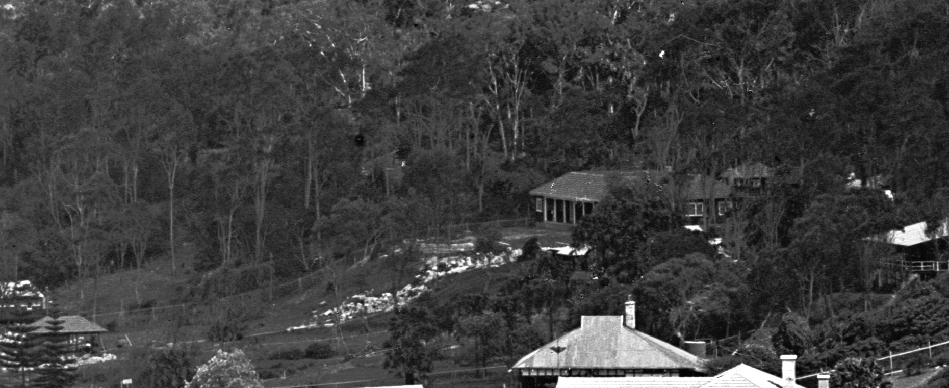 The other element is the change in the garden over the years. From the outset an expansive lawn fills the front garden of the property, while the back lots retain the massive trees that once grew all over Pittwater prior to developments. Earlier panoramas show not much of a garden in the front area.