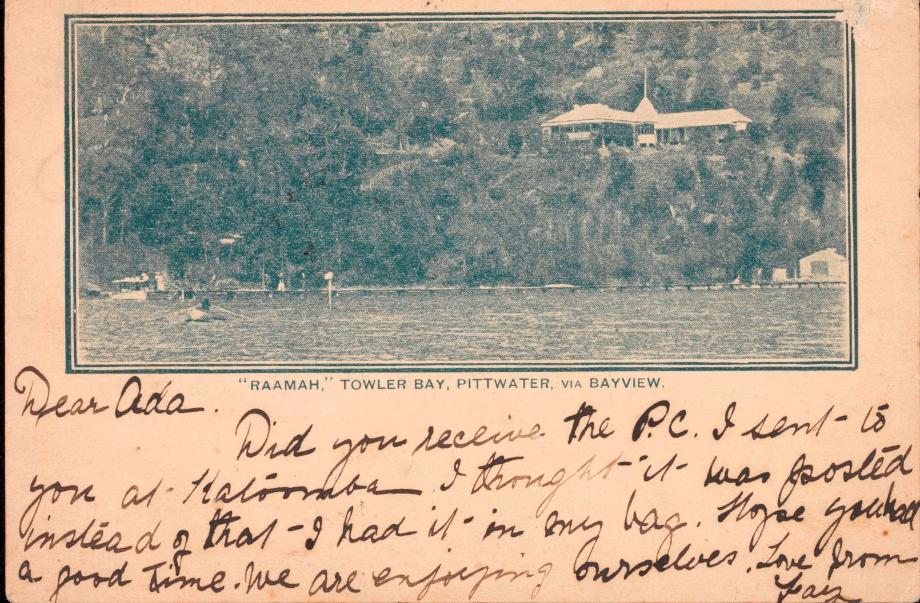 In 1898 the Wheeler family rent the Morrisons’ cottage ‘Killarney’ at Bay View at one pound per week with seabaths and a good boat included. Mr. J. S. N. Wheeler relates insights on this cottages in his 1940 published The Early Days of Bayview, Newport, Church Point and McCarr’s Creek, Pittwater: