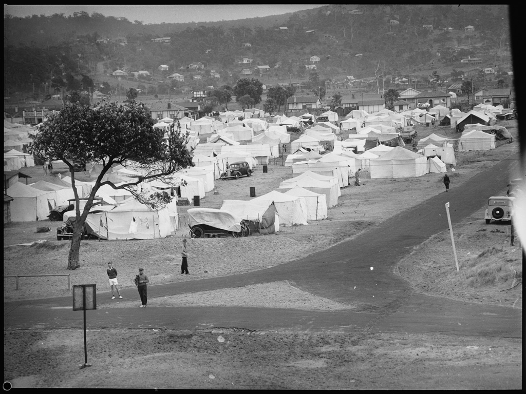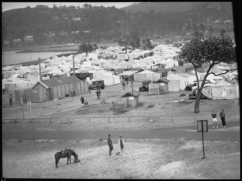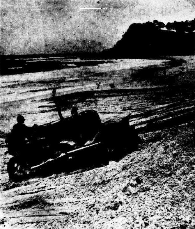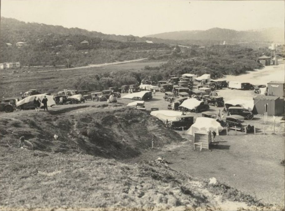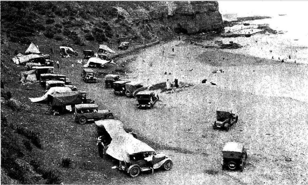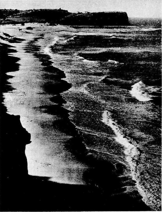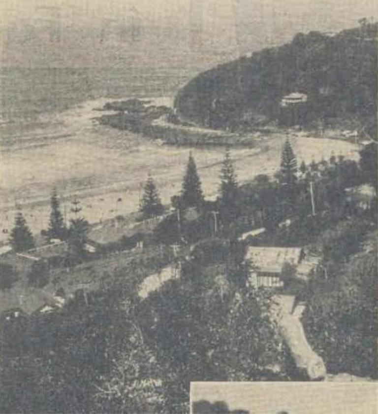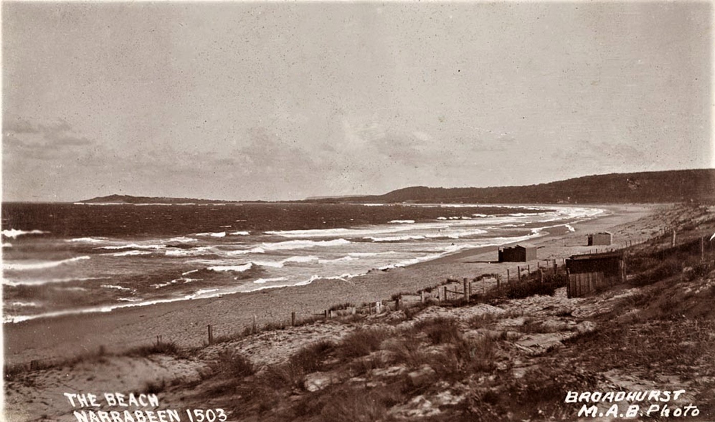 Looking northward along Mona Vale ocean beach from the heights of Narrabeen Park. LATE AFTERNOON SEASCAPE—ROOF LIFTED BY GALE—WITH THE FLEET ON MANOEUVRES. (1935, February 15).The Sydney Morning Herald (NSW : 1842 - 1954), p. 14. Retrieved from http://nla.gov.au/nla.news-article17159640