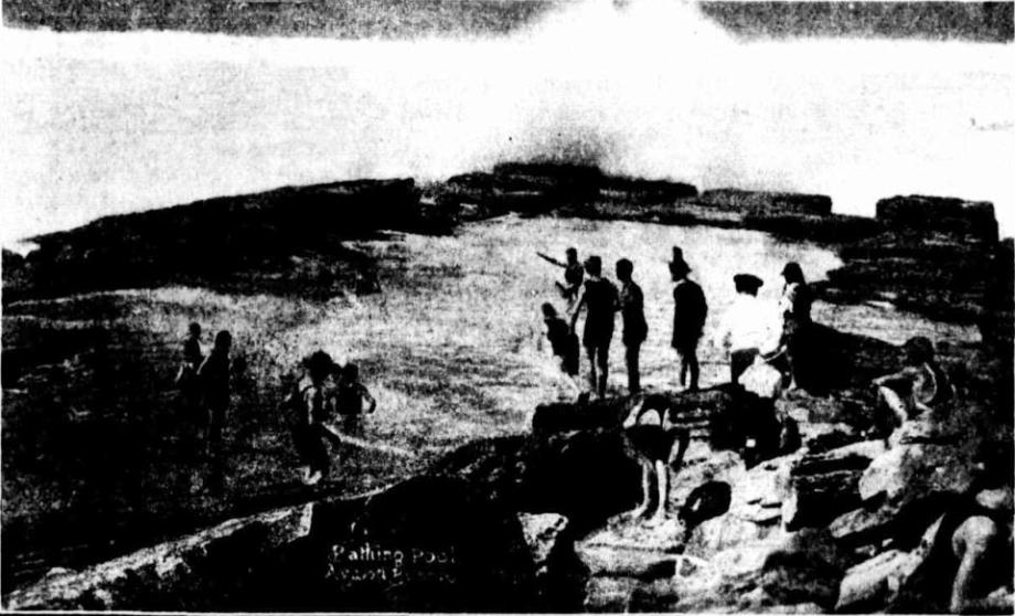 Top: MONA VALE BEACHES, With rock-bath shown in left-centre of picture. A regular hourly service of motor buses takes 'trippers' to this beach. From: (1915, April 7).Sydney Mail (NSW : 1912 - 1938), p. 34. Retrieved from http://nla.gov.au/nla.news-article166255867
