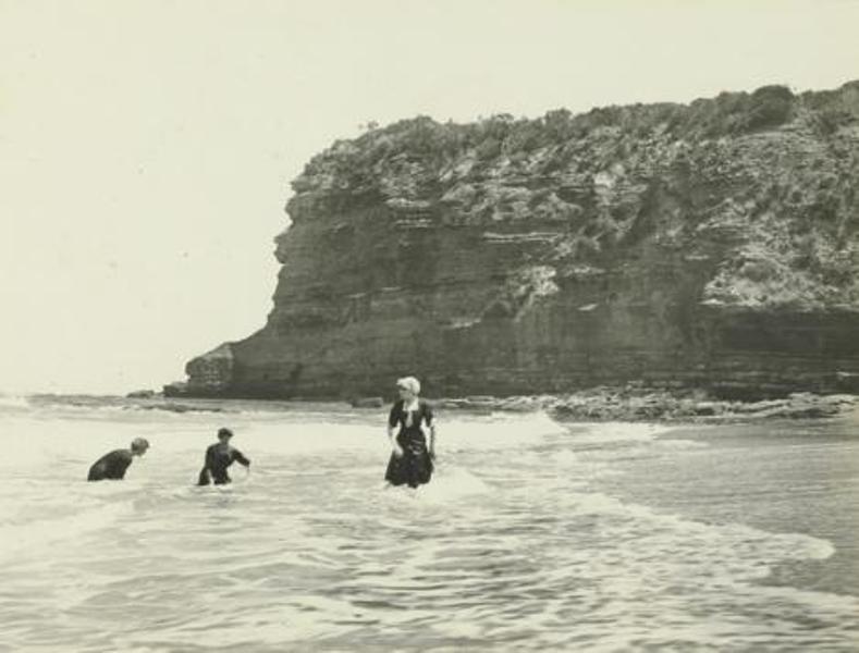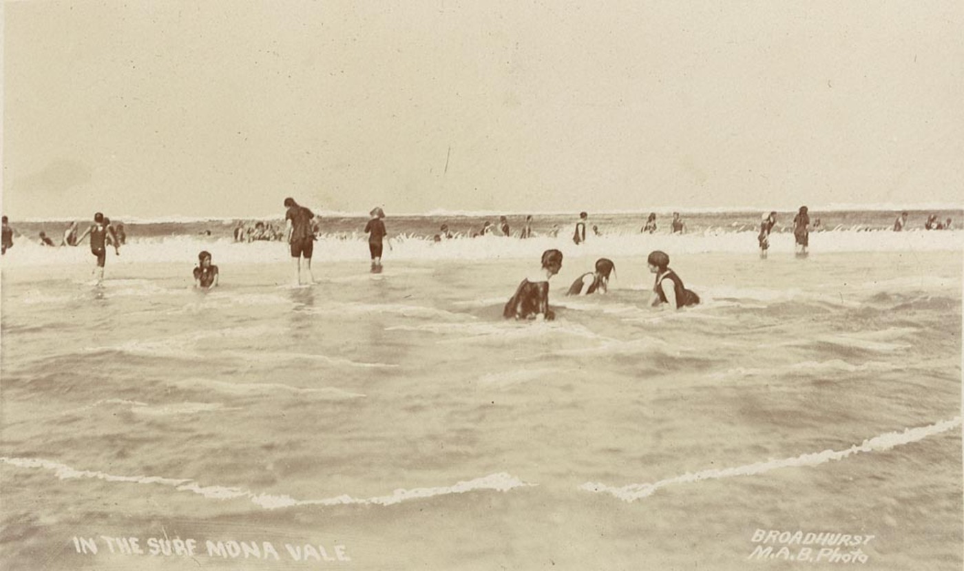 "In the surf, Mona Vale" ca. 1900-1927, Sydney & Ashfield : Broadhurst Post Card Publishers Image No. a106014 from the collections of the State Library of NSW.