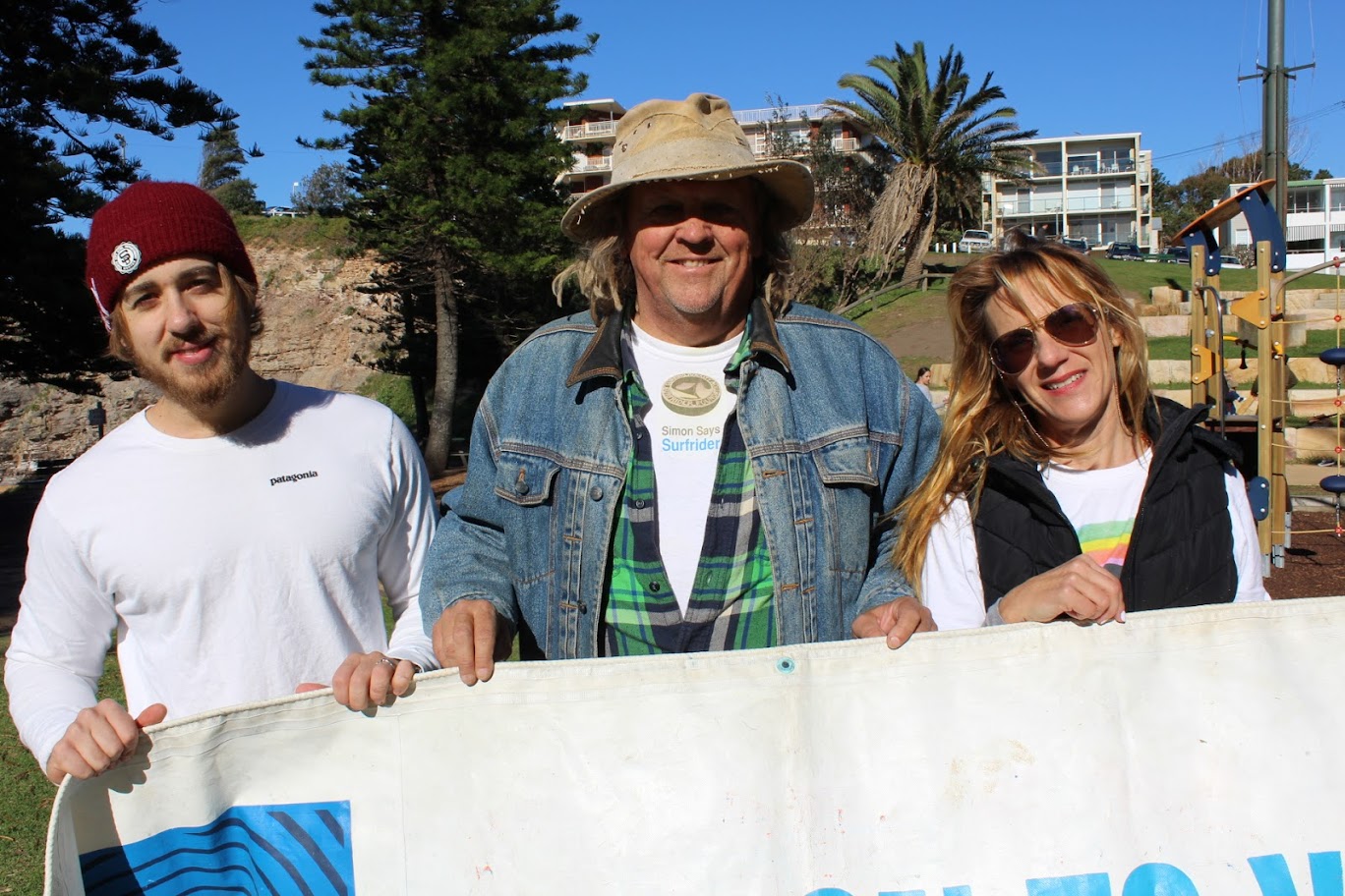 Northern Beaches Surfrider Foundation members Brendan Donohoe (middle) with Jesse and Rowan Hanley - who organise Beach Clean Ups and have campaigned for a plastics ban in NSW. A J Guesdon photo