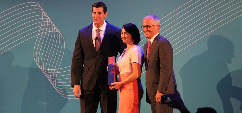 Veteran Employee of the Year Rachel Ranton with Ben Roberts-Smith VC and The Hon. Malcolm Turnbull, Prime Minister of australia