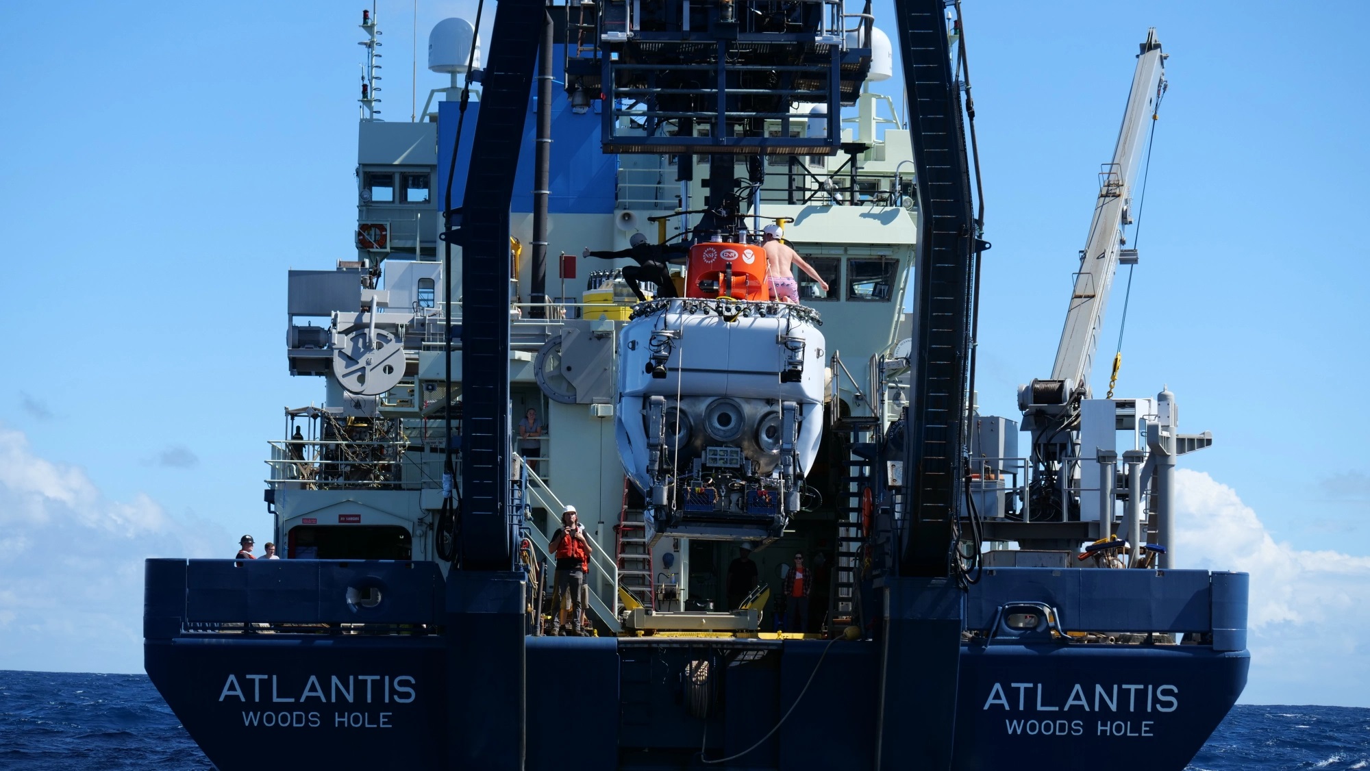 HOV Alvin is owned and operated by the Woods Hole Oceanographic Institution (WHOI). Alvin is responsible for all of the hard rock seafloor lava collection and biological sampling. Photo: WHOI