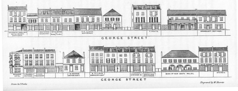 This allotment is shown on surveyor James Meehan’s map of Sydney on the eastern side of George Street, between Hunter Street and Martin Place, where De Mestre Place is today. This land was later held in trust for John Black’s two children, and became the land on which Prosper de Mestre resided and ran his business from. While Captain Black was at sea Mary Hyde resided on this allotment backing onto the Tank Stream.