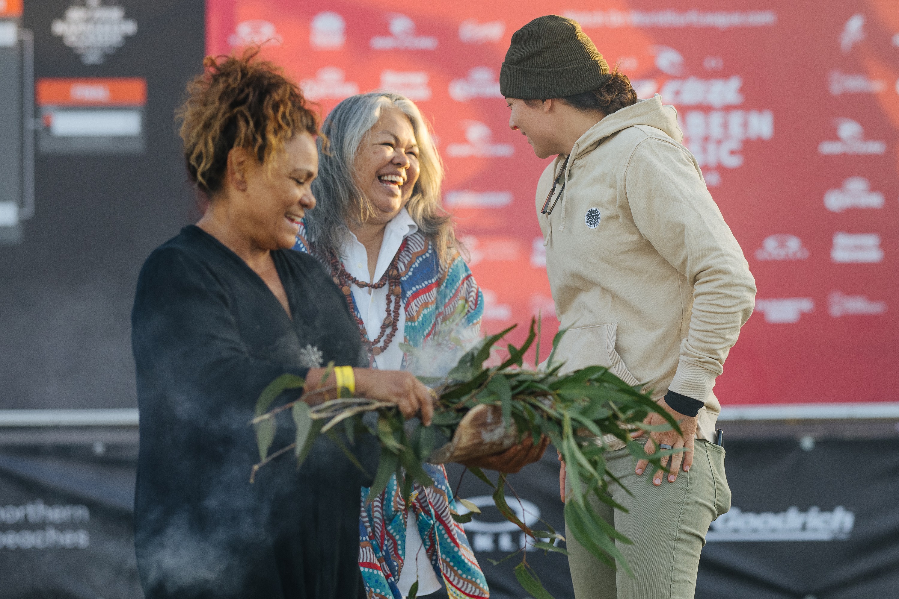 Day 1 of the 2021 Narrabeen Classic was a lay day due to conditions. Friday was a day of celebrations of local culture nonetheless as competitors, staff, and fans were greeted with an Acknowledgement of Country and Smoking Ceremony by Susan Moylan-Coombs and Caroline Glass-Pattison from the Gaimaragal Group.