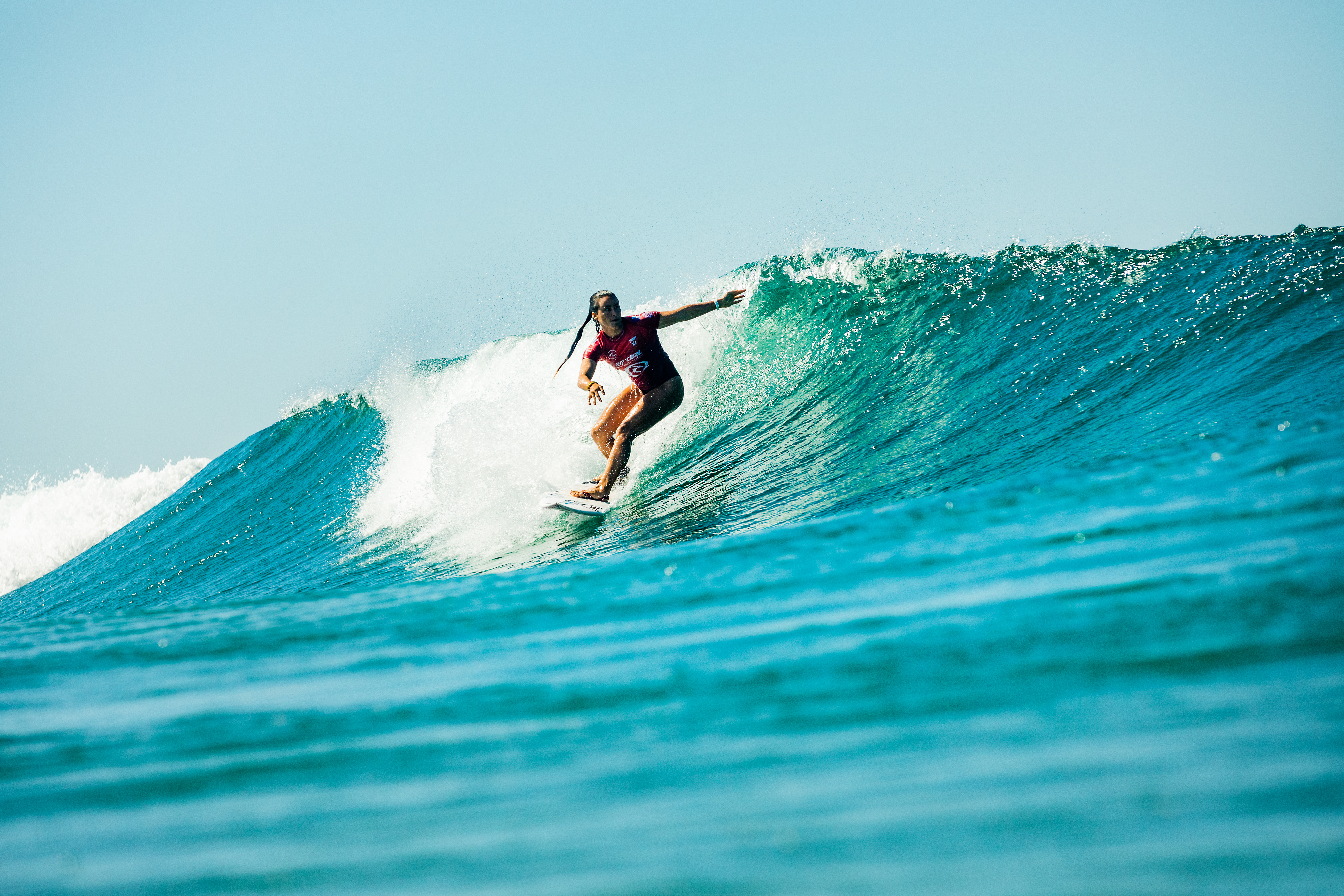 It was a tough morning for all three World Champions with Stephanie Gilmore (AUS), Carissa Moore (HAW), and Tyler Wright (AUS) falling behind in their opening round heats. For seven-time Champion Gilmore and four-time Champion Moore, the two were able to avoid the dreaded Elimination Round with second-place placings.
